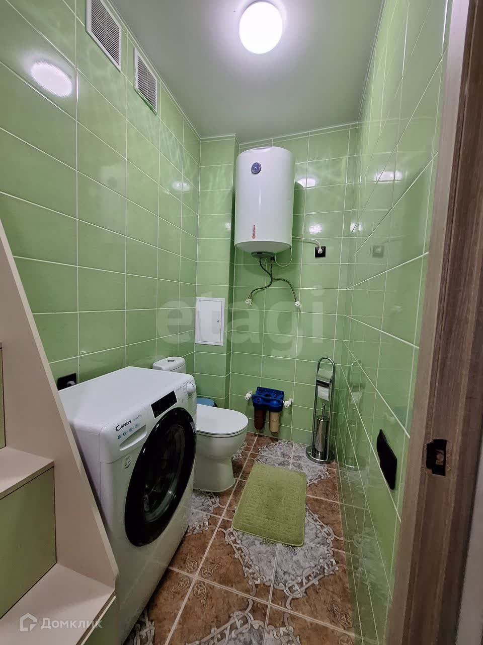 Прекрасный и большой совмещенный санузел вместил и ванну, и мойку, а также стиральную машинку с сушкой (остается). Имеется магистральный фильтр очистки воды и отдельный большой водонагреватель накопительного типа для ванной.