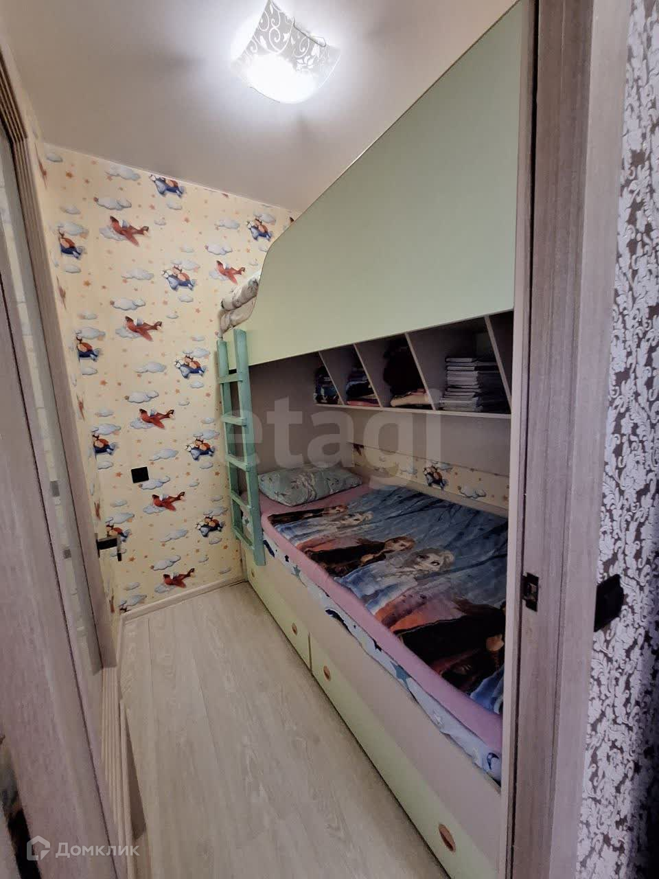 Продается большая квартира мечты "заезжай и живи" площадью 49,6 кв.метров, способная комфортно уместить семью с двумя детьми, а при желании с еще одним членом семьи. Это достигается за счет переоборудования кладовки в детскую спальню с двухярусными кроватями, в которых детям очень удобно и комфортно спать.