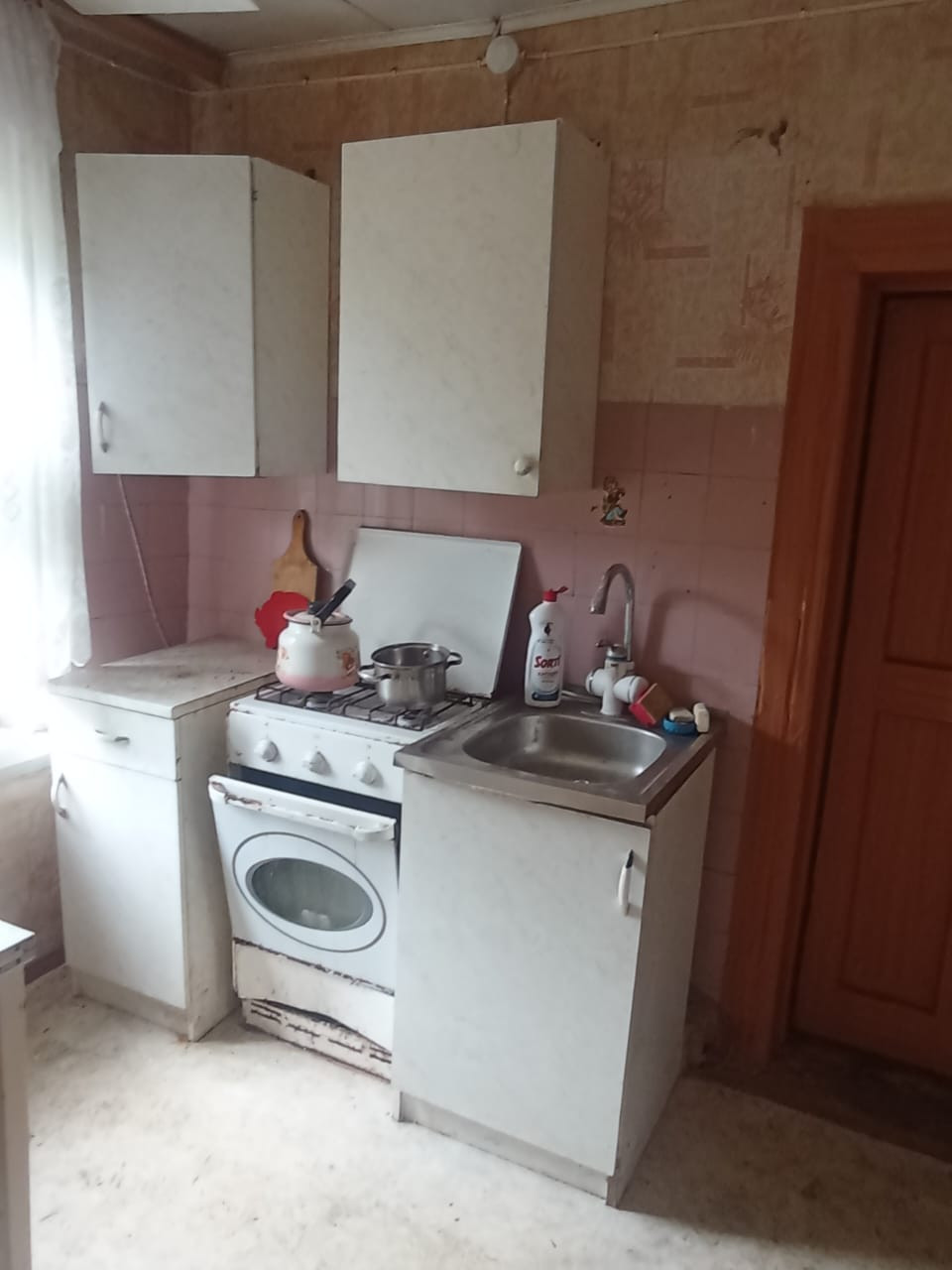 Квартира требует ремонта. Отопление печное. Вода-скважина. Газ баллонный. Канализации нет. Есть два чулана, сарай, место для огорода.   Ипотека, материнский капитал. ТОРГ