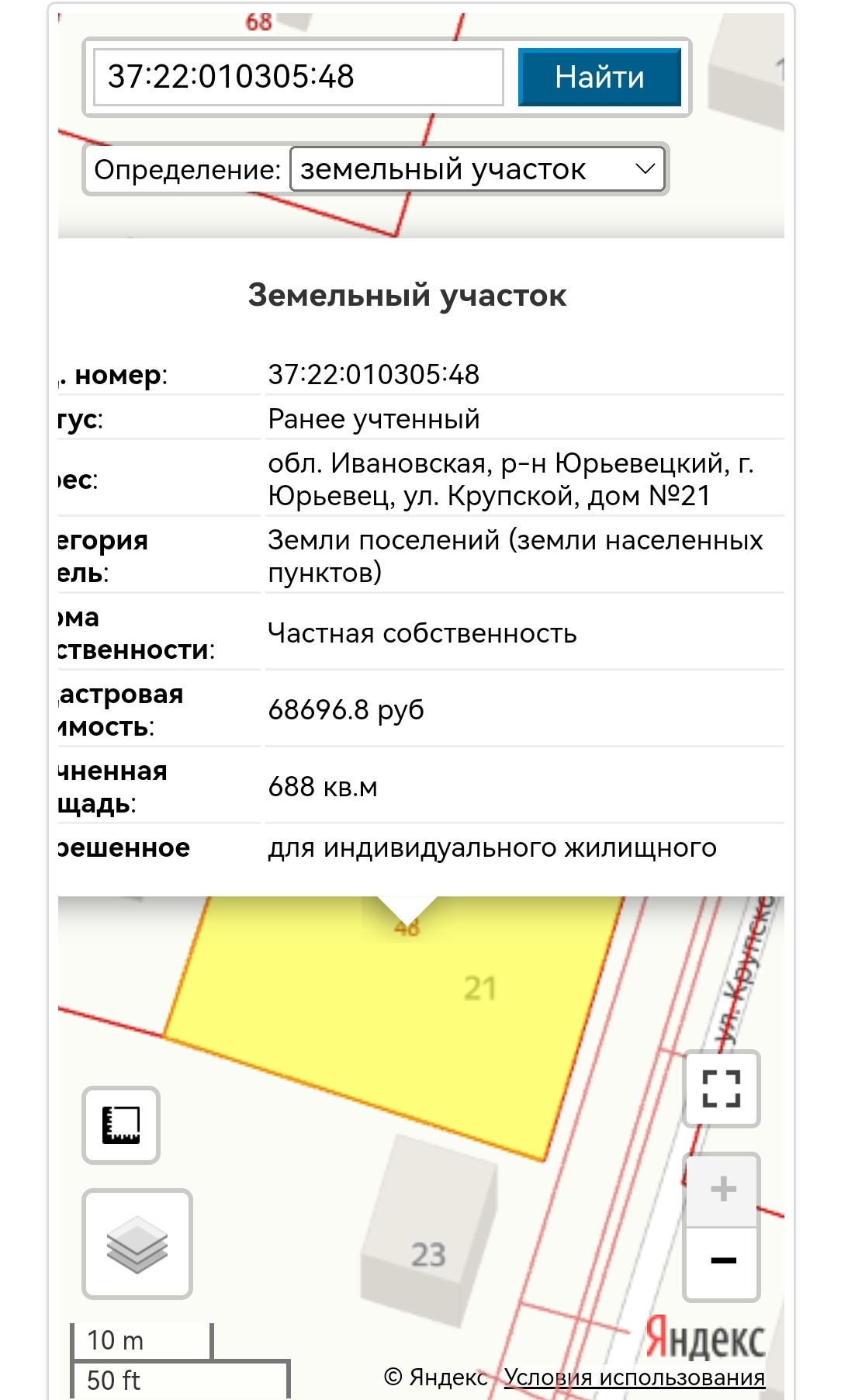 кад.номер 37:22:010305:48 площадь участка 688 квм