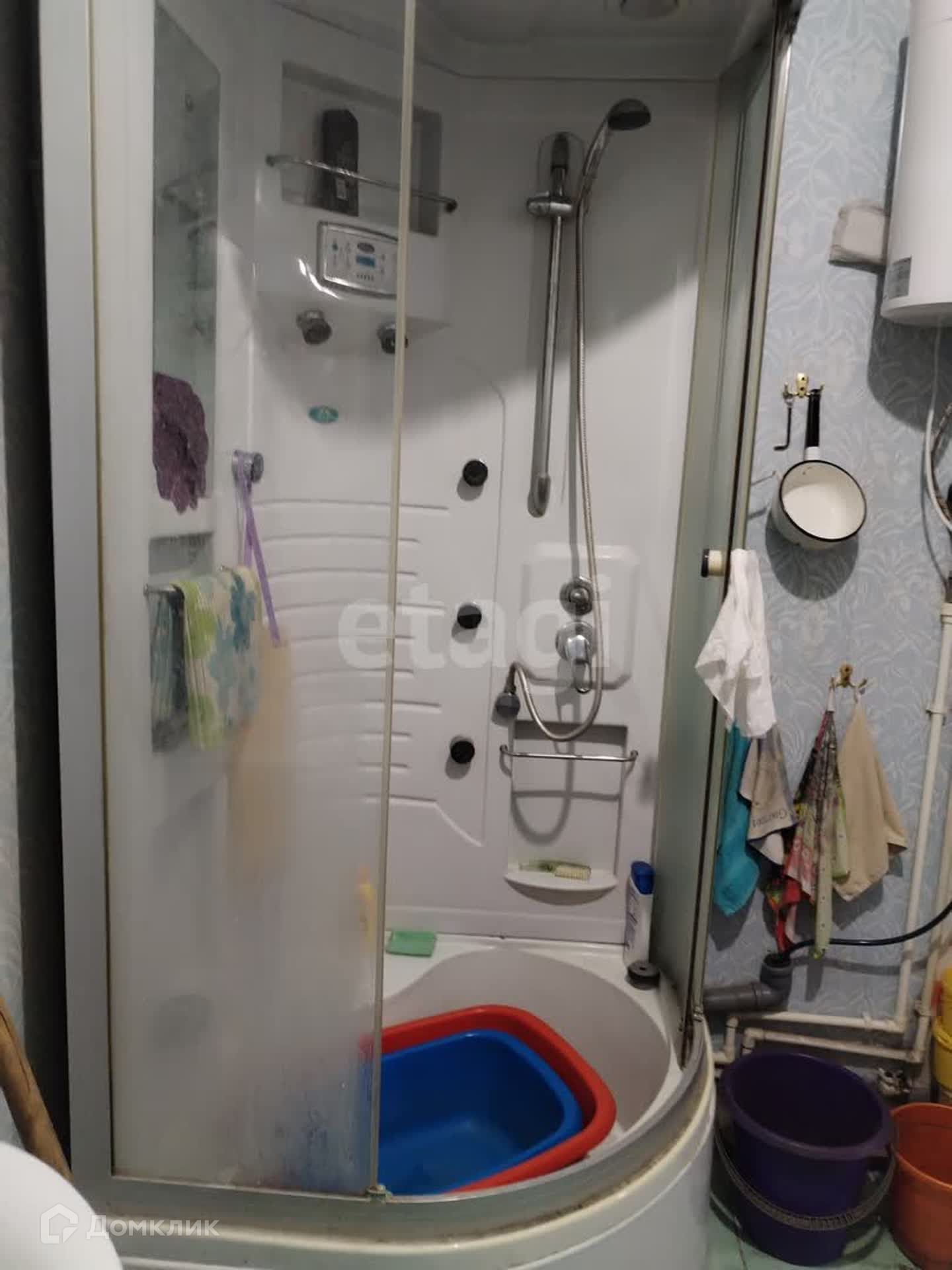 В доме 4 комнаты,имеется санитарный узел с душевой кабиной. Вода заведена в дом, канализация- септик. Отопление- печное.