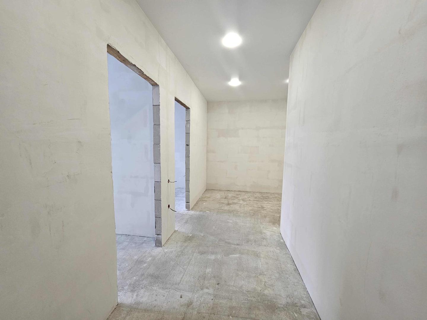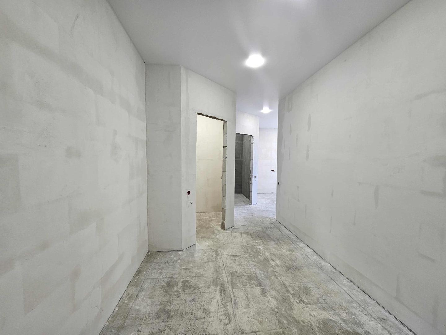 - Просторная гостинная+кухня студия (площадью 25 кв.м), 2 отдельные просторные спальни, совместный санузел, большой коридор 19 кв.м с местом под гардеробную.