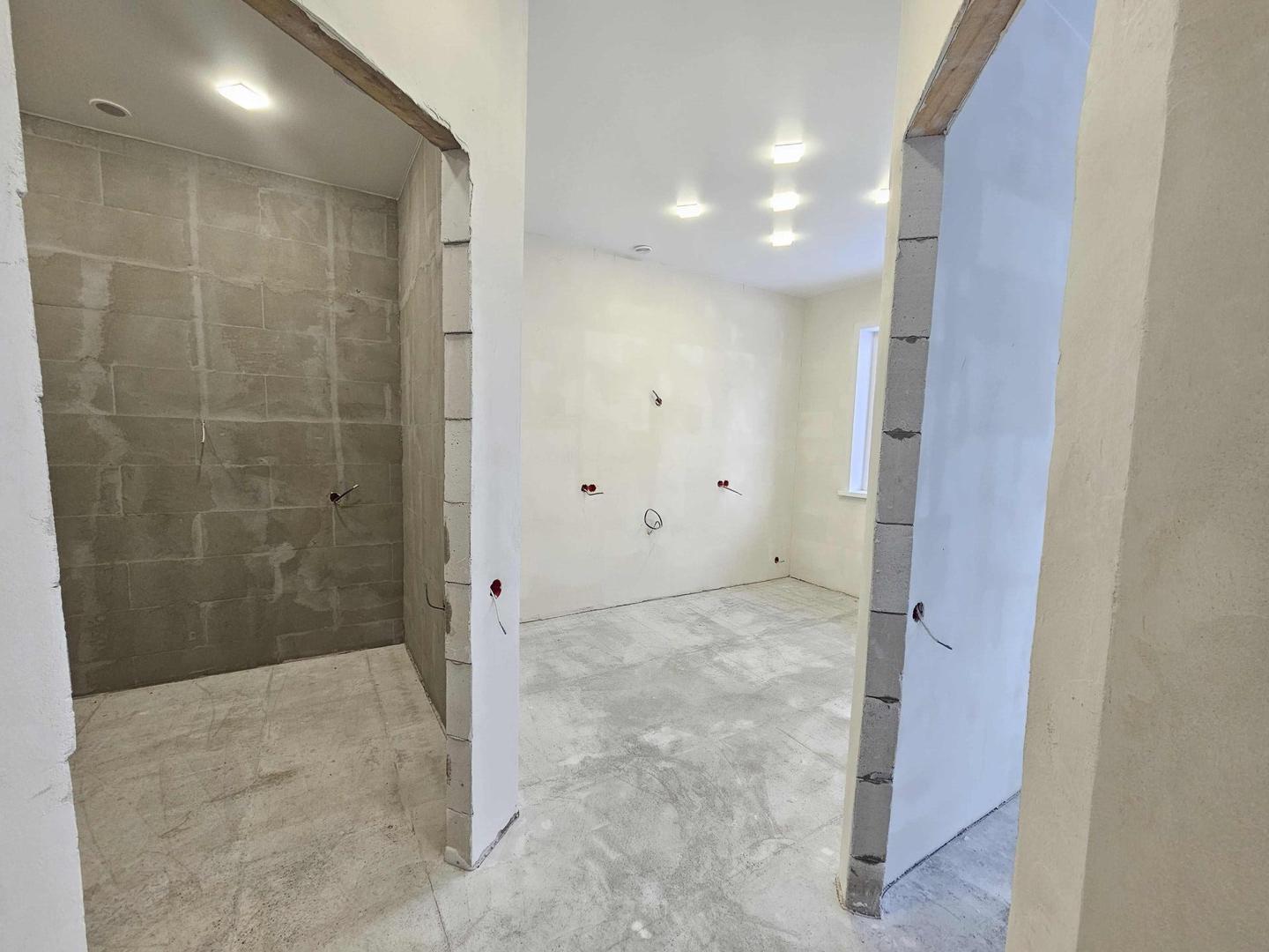 - Санузел с подводкой для сантехники, выведена вентиляционная вытяжка+подводка под полотенцесушитель.