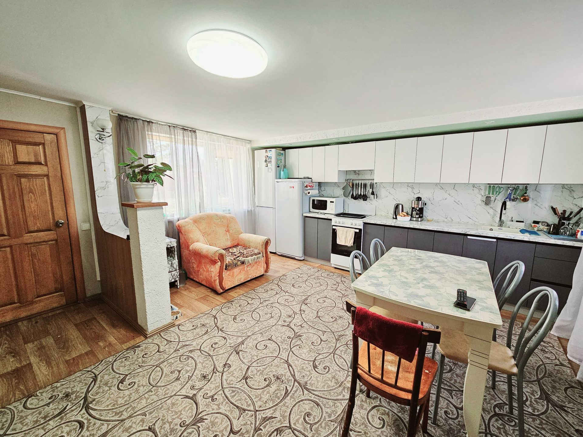 Бонус покупателю - Кухонный гарнитур, печь, стол стулья в кухне, прихожая.