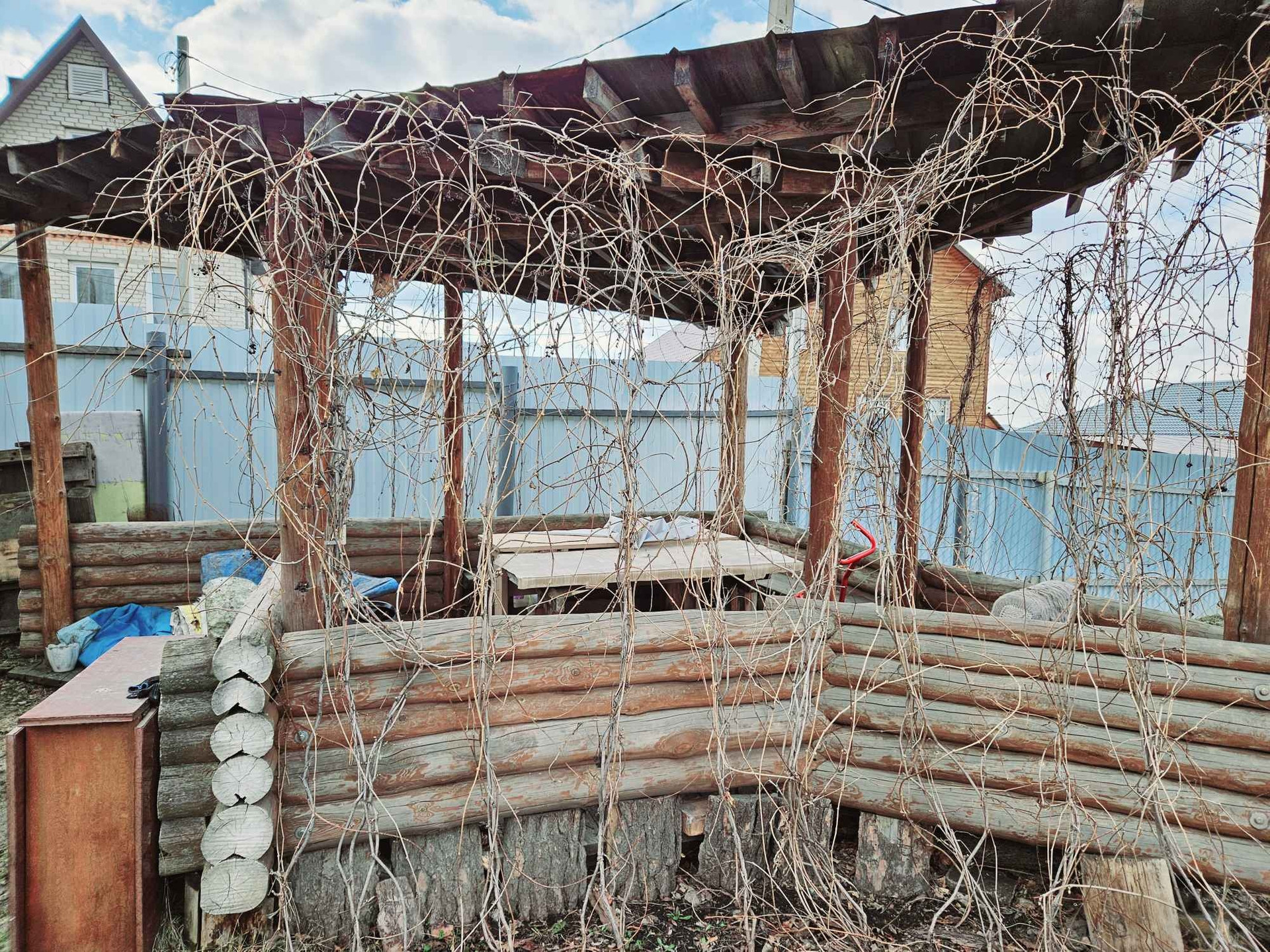 Организована стационарная зона отдыха-крытая беседка, где в летний период можно отлично проводить время на свежем воздухе. Есть пространство для установки батута, бассейна.