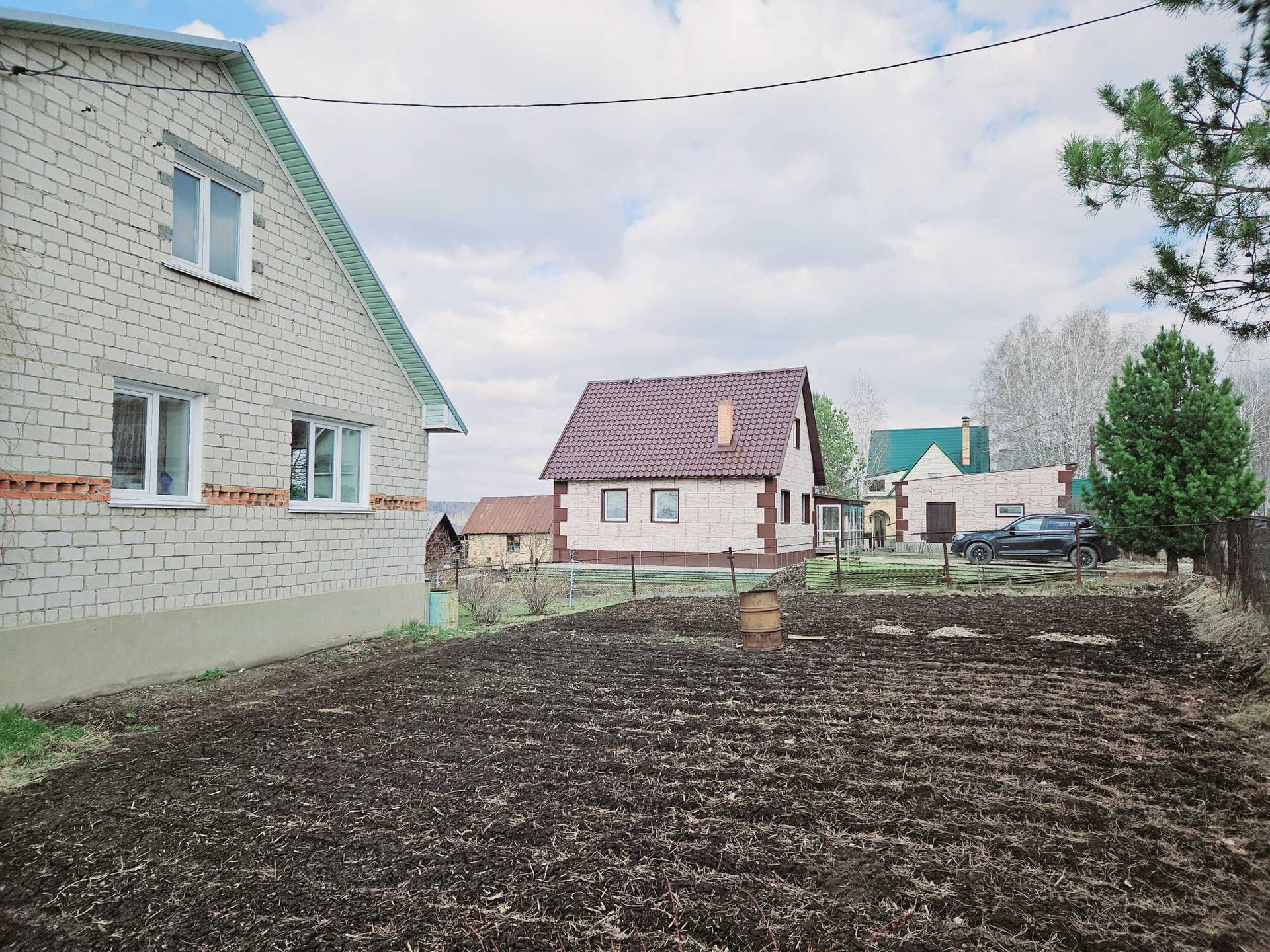 На земле выращены многолетние насаждения: дуб, кедр, береза, яблони, смородина, крыжовник, клубника, жимолость, малина, вишня, Большая теплица и пр. Земля плодородная.