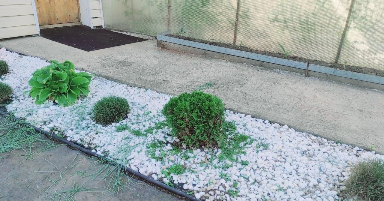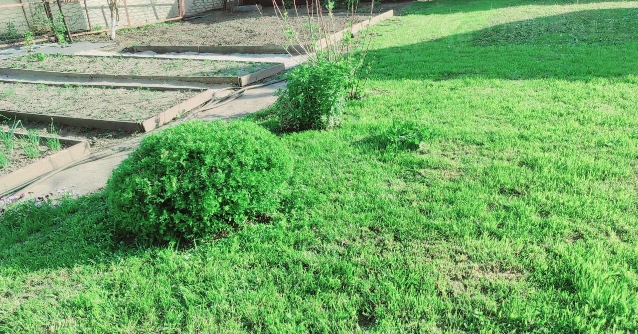 УЧАСТОК -  в огороде всё застелено материалом, трава не растёт даже на грядках. Бетонные дорожки.
