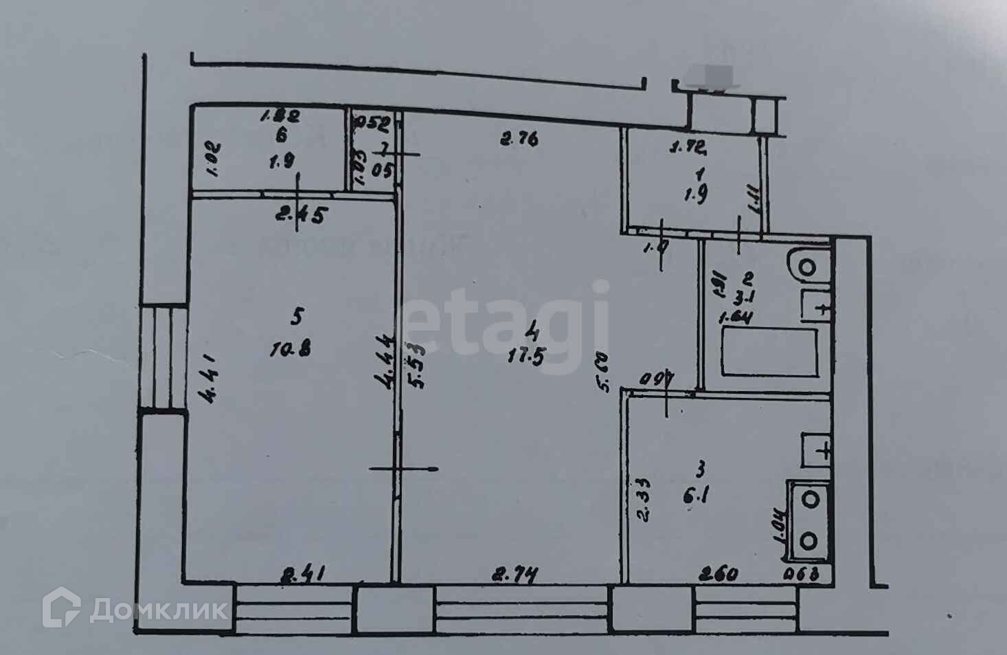 Общая площадь 41.8 м2