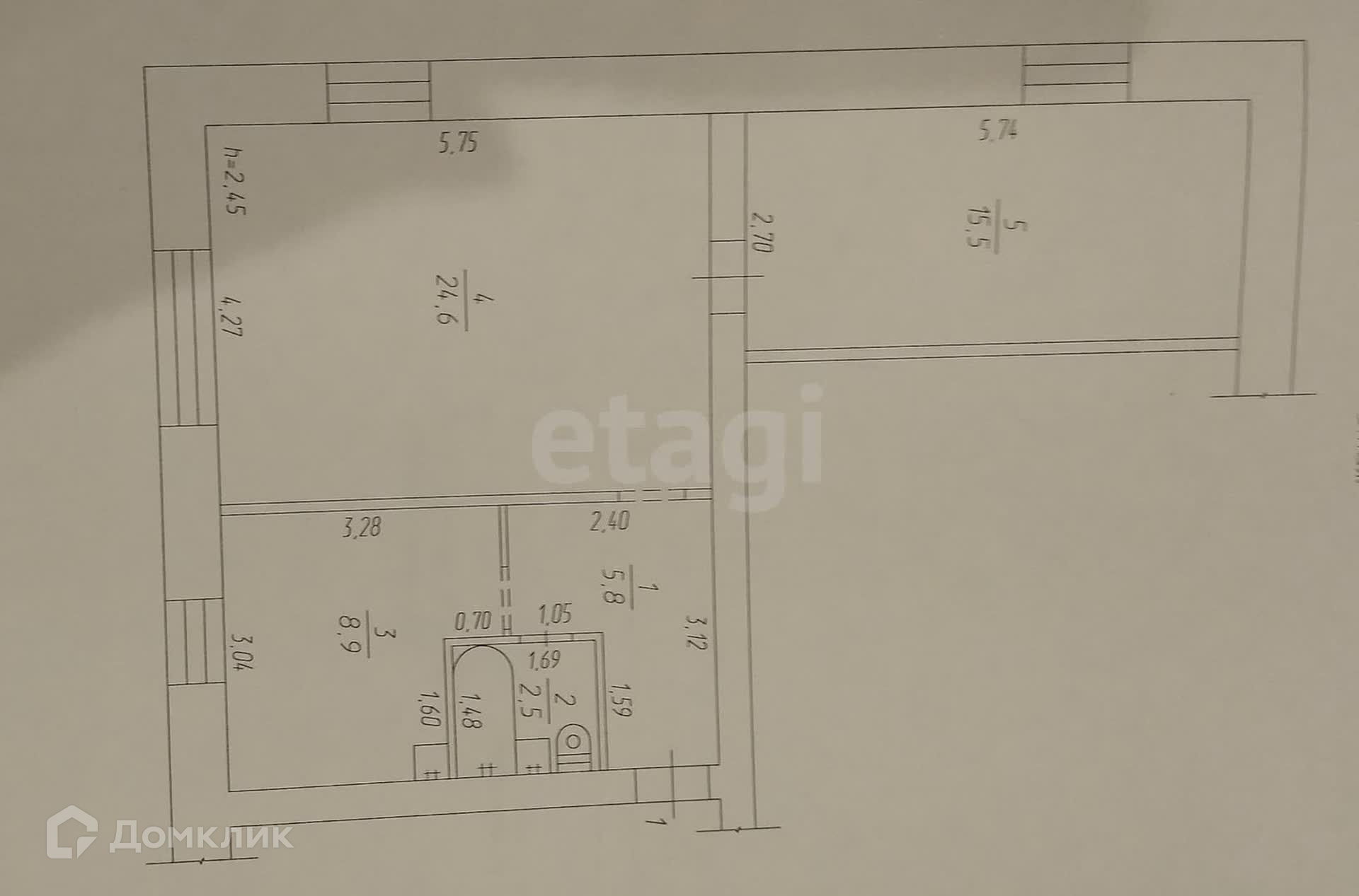 Балкон, лоджия 1 балкон