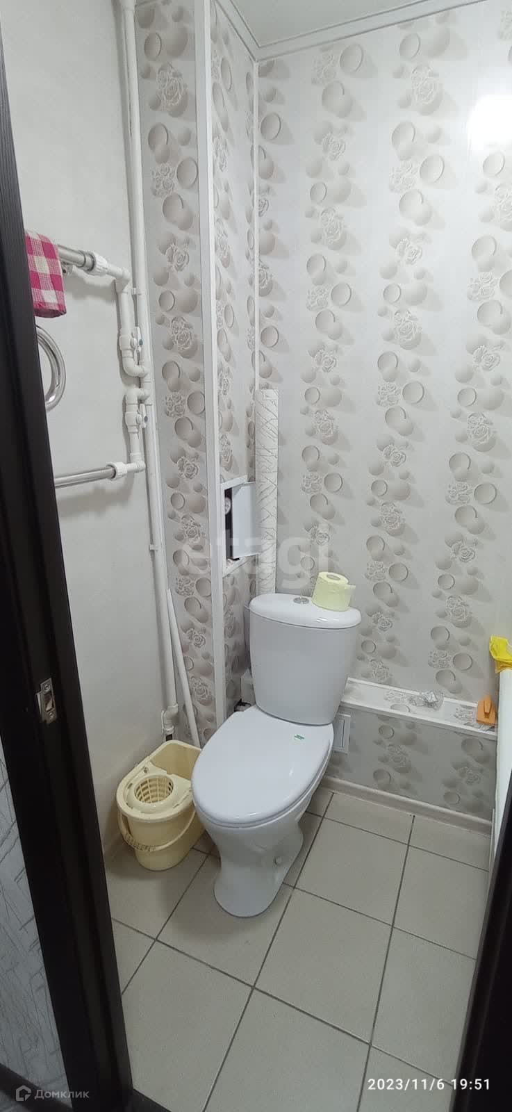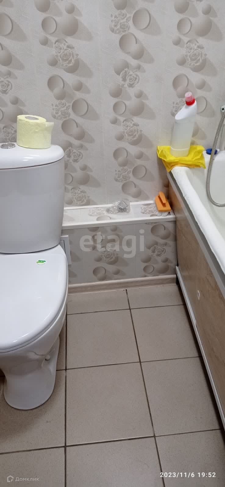 Санузел совмещен, на полу кафель , стены панели.