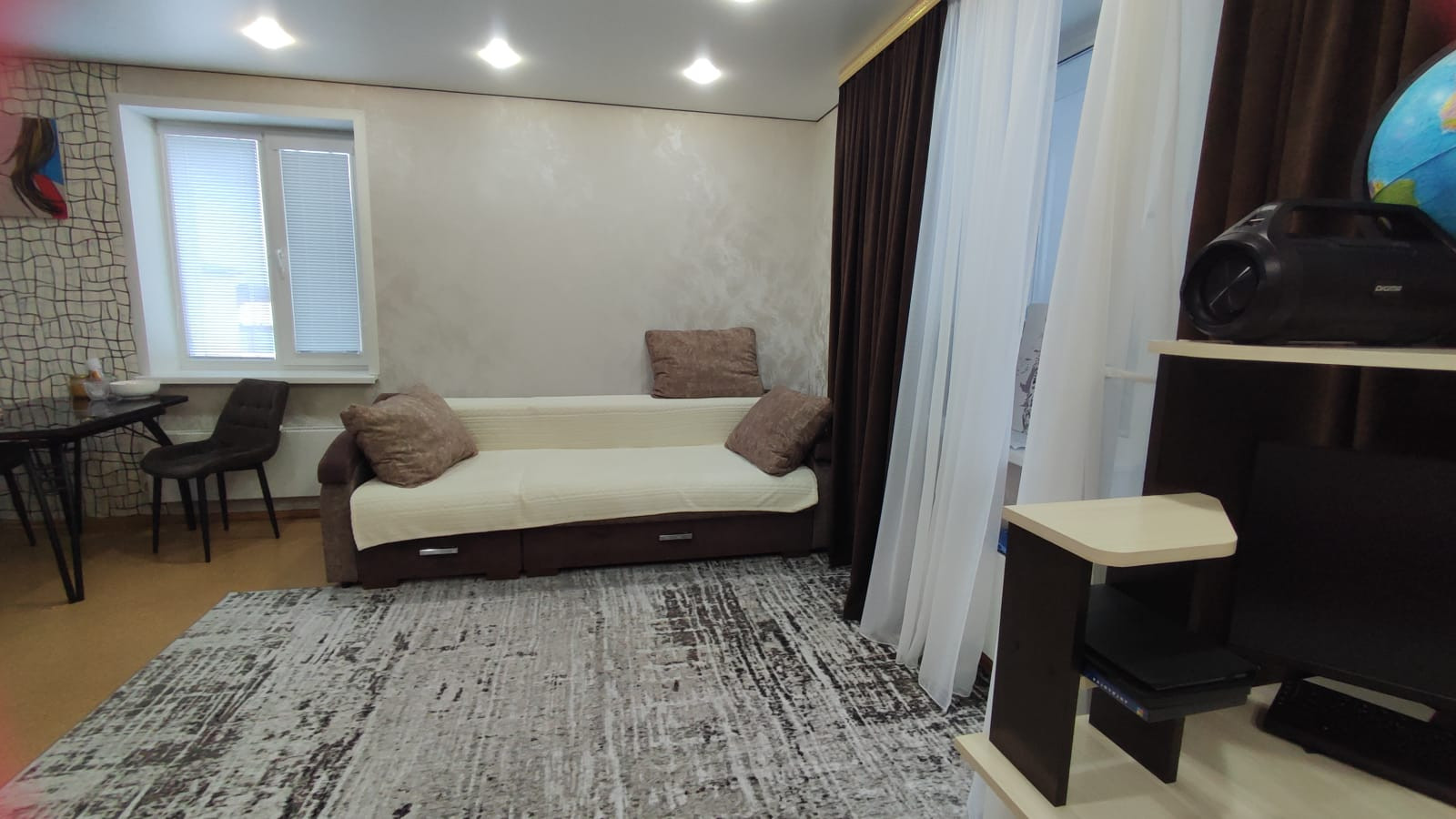 Продам уютную однокомнатную квартиру-студию в новом и тихом  районе нашего города (Солнечный).Площадью 35кв.м. +застекления лоджия 3кв.м.( встроенный шкаф,утеплён пол,окна пластиковые,не алюминиевые)