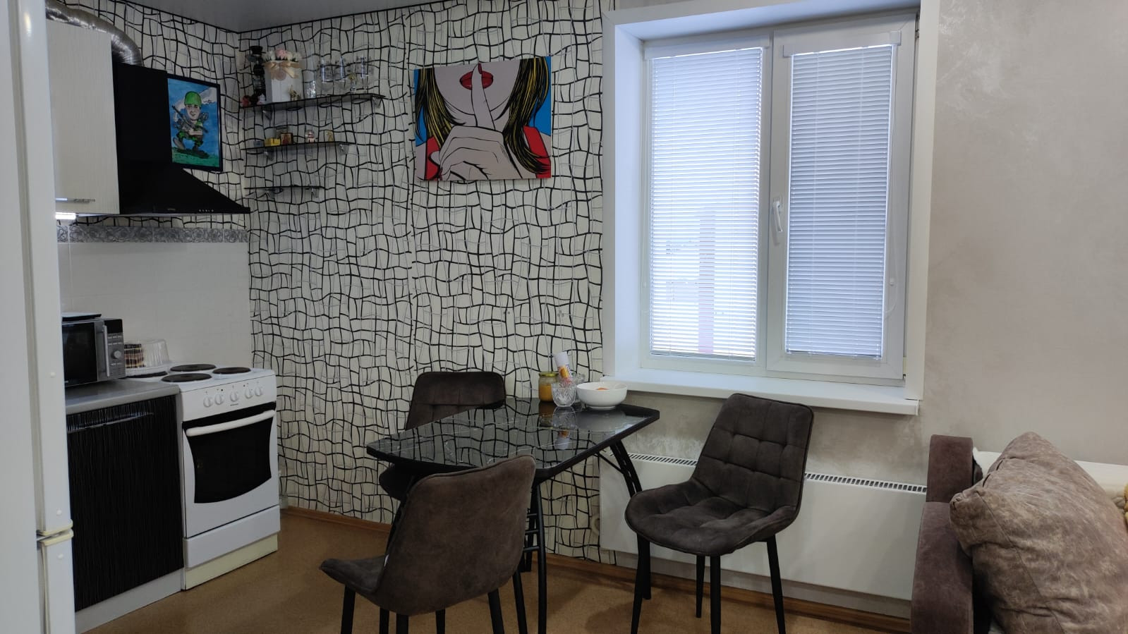 В квартире оставим все алюминевые жалюзи, кухонный гарнитур,вытяжку,плиту. Большой двор,широкие дороги во дворе,проблем с парковкой нет.