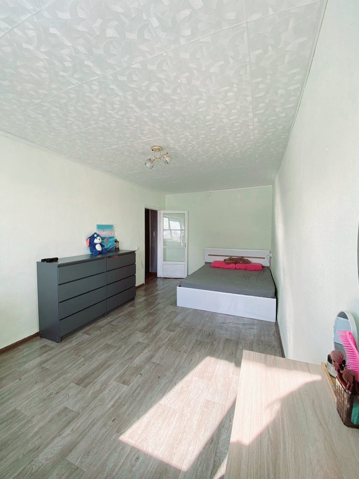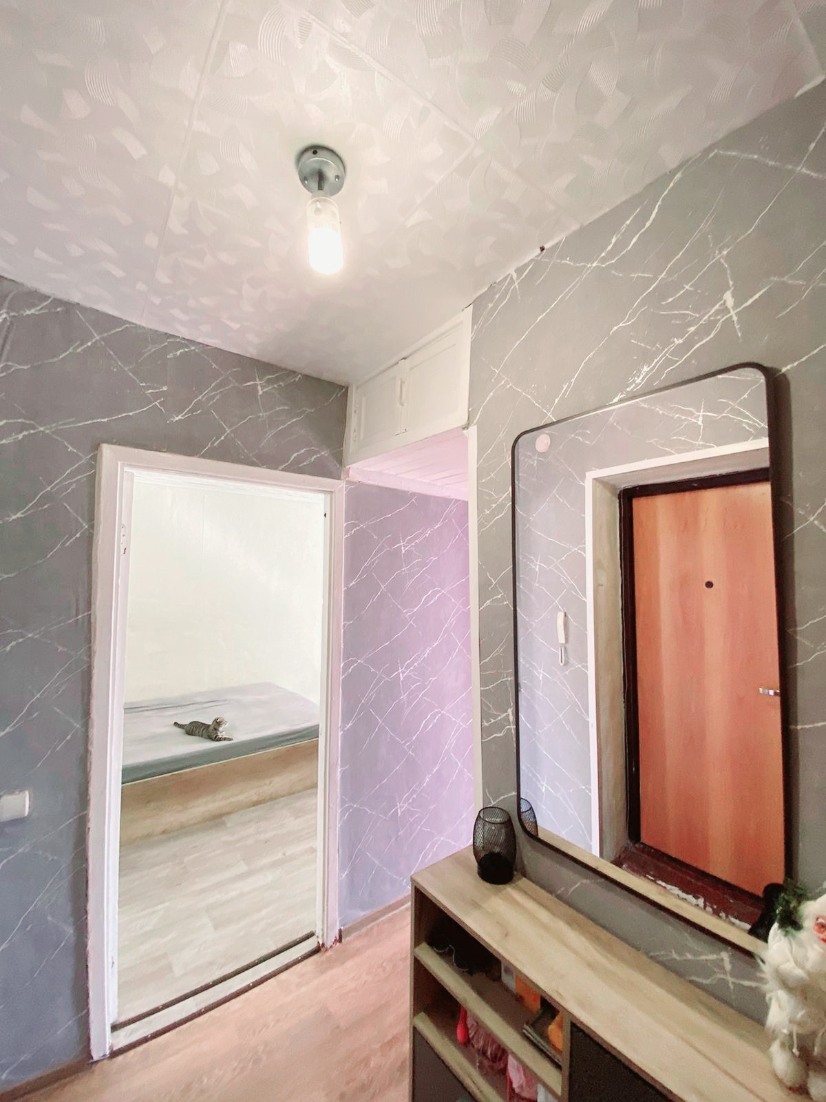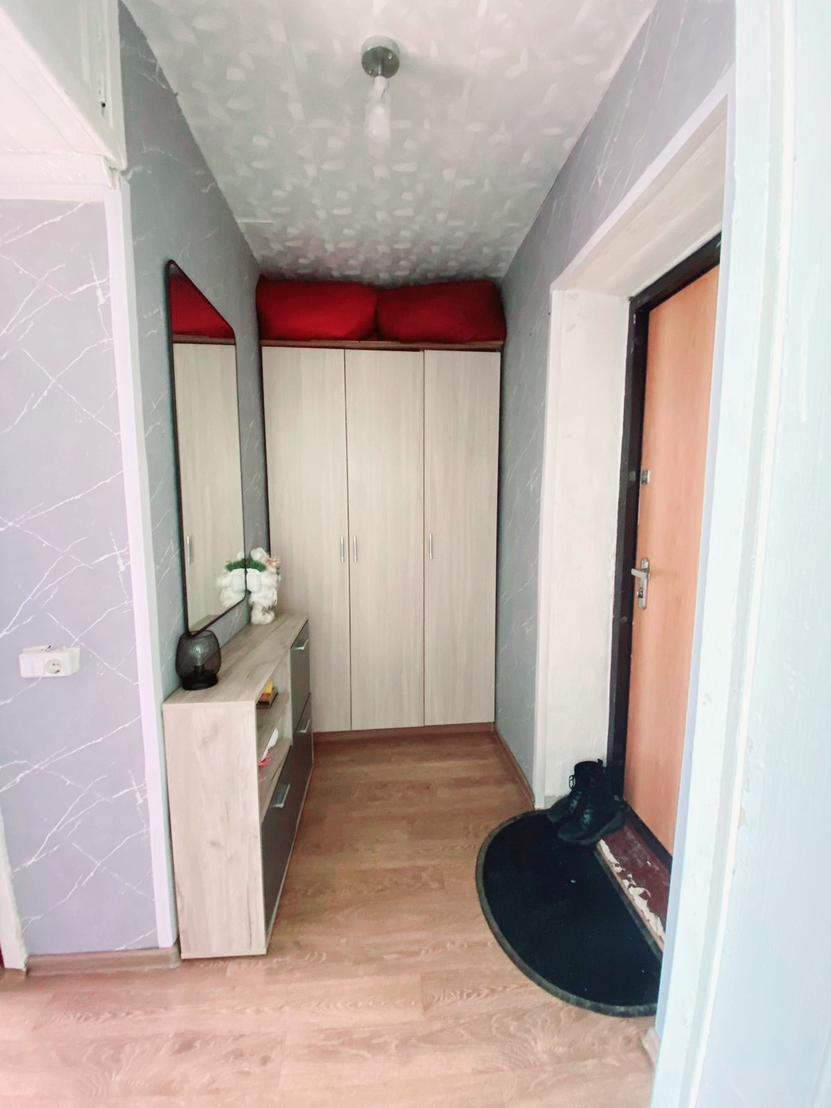 В квартире остается все: большая кровать, шкаф встроенный, комоды(2), столы(один консоль подвесная и кухонный) и зеркала(большое в коридоре и в спальне круглое с подсветкой), обувница, вся кухня остается, сетки на окнах уже стоят.