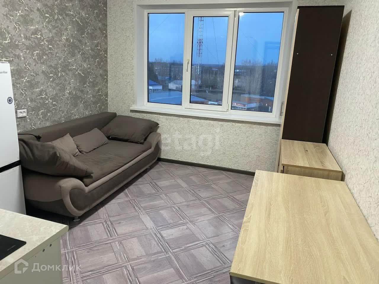 В квартире современный ремонт. Установлено пластиковое окно, наклеены качественные обои, постелен линолеум.
