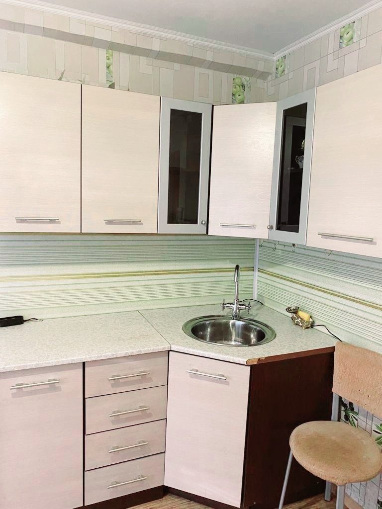 Квартира чистая , заходи и живи, частично остаётся мебель, окна пластиковые, кухня 8,7 м2.