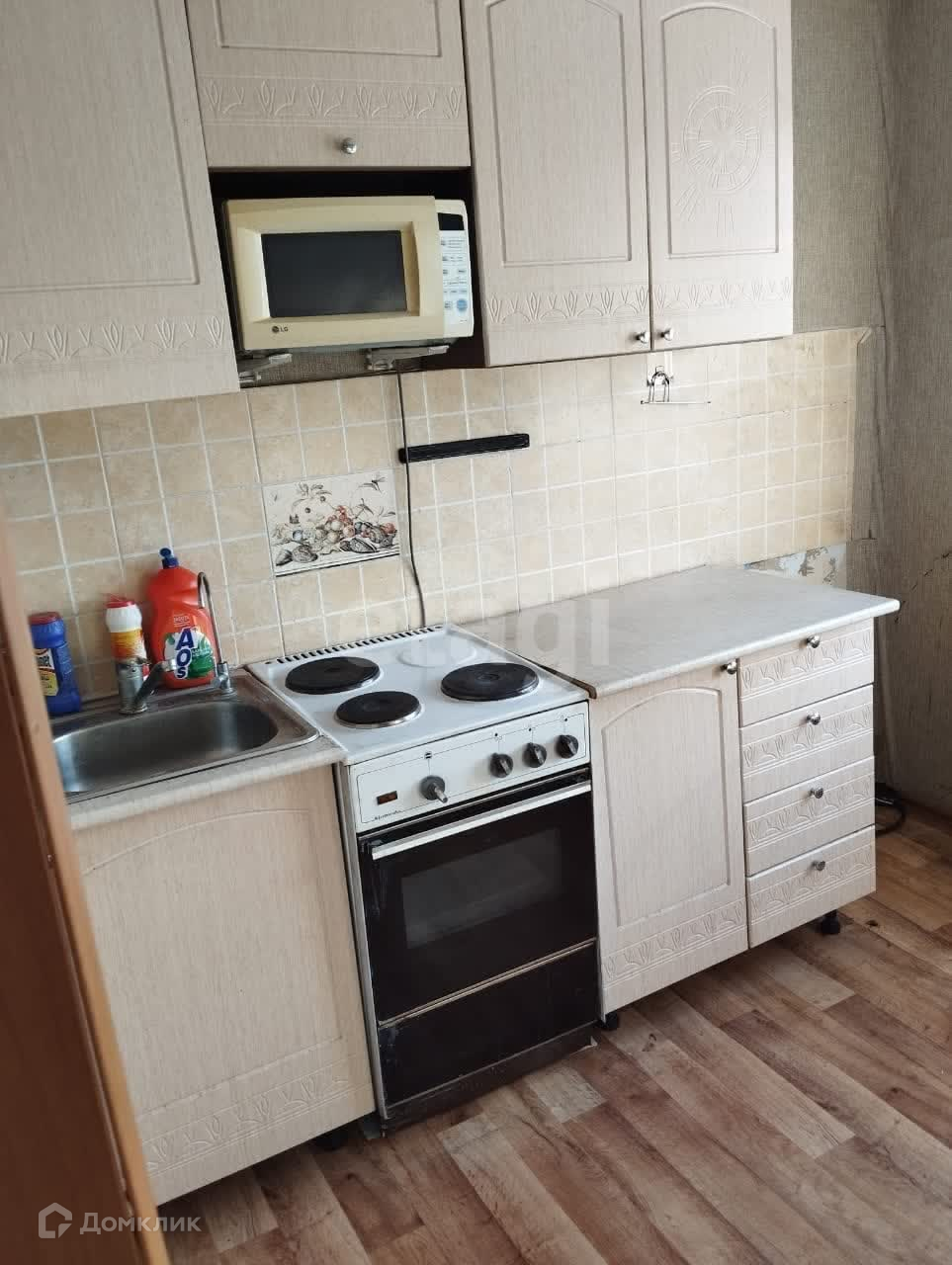 Квартира с мебелью. Есть шкаф, кровать, кухонный гарнитур, электрическая плита. При необходимости привезем стиральную машину и холодильник.