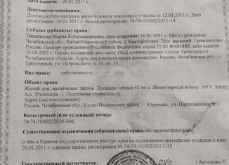 Продаётся дом общей площадью 62 кв. м., с участком 18 соток, г. Юрюзань. В доме 2 комнаты, кухня. Установлены пластиковые окна. В доме имеется большой сухой погреб. Печное отопление. Туалет уличный. Есть хорошая баня, теплица и хозяйственные постройки. Участок ухожен, плодоносящие кусты и деревья. Центральная асфальтированная дорога. Остановка транспорта. Возможе... |