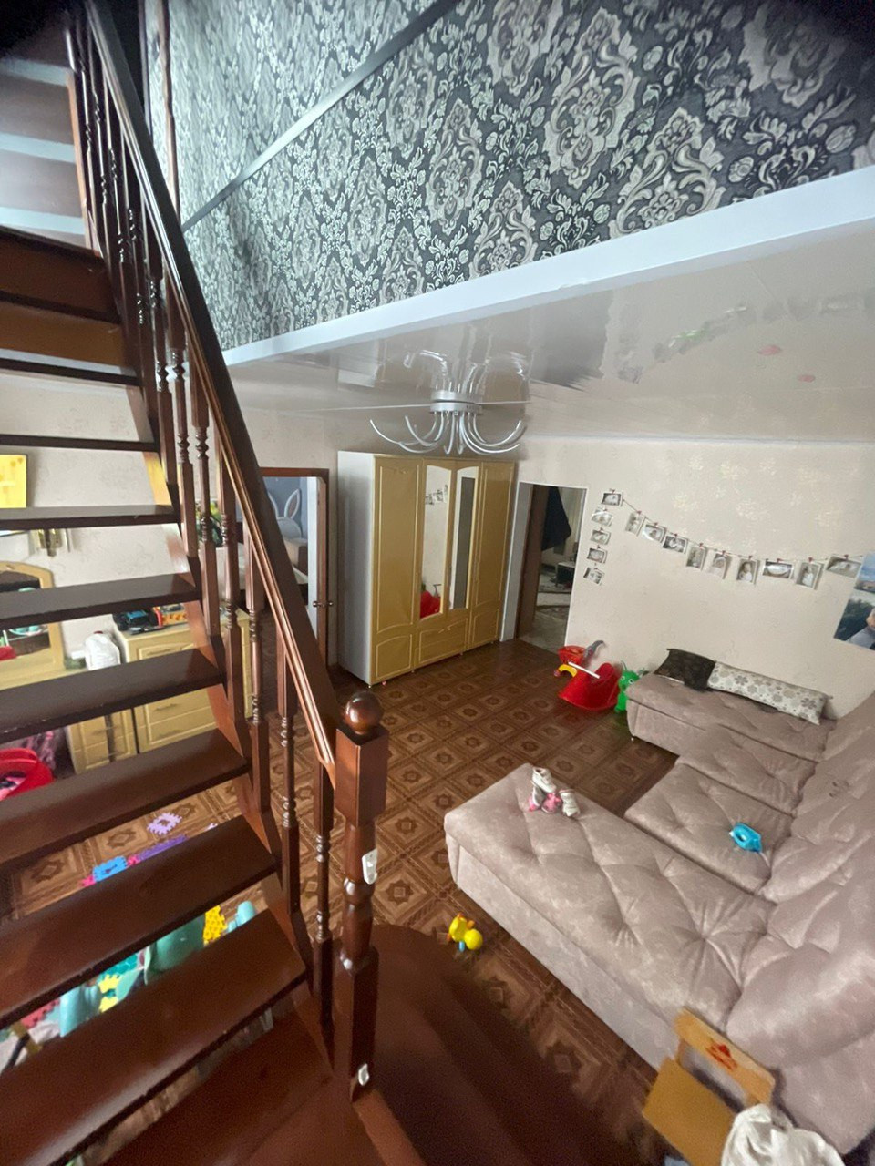 три спальни, просторная кухня, гостиная, санузел, просторный холл.