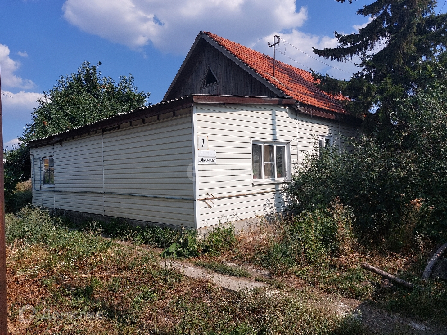 На участке стоит гараж со смотровой ямой, большая яблоня, перед домом растёт вишня, металлические ворота. Номер в базе: 8212358. Район: Центральный