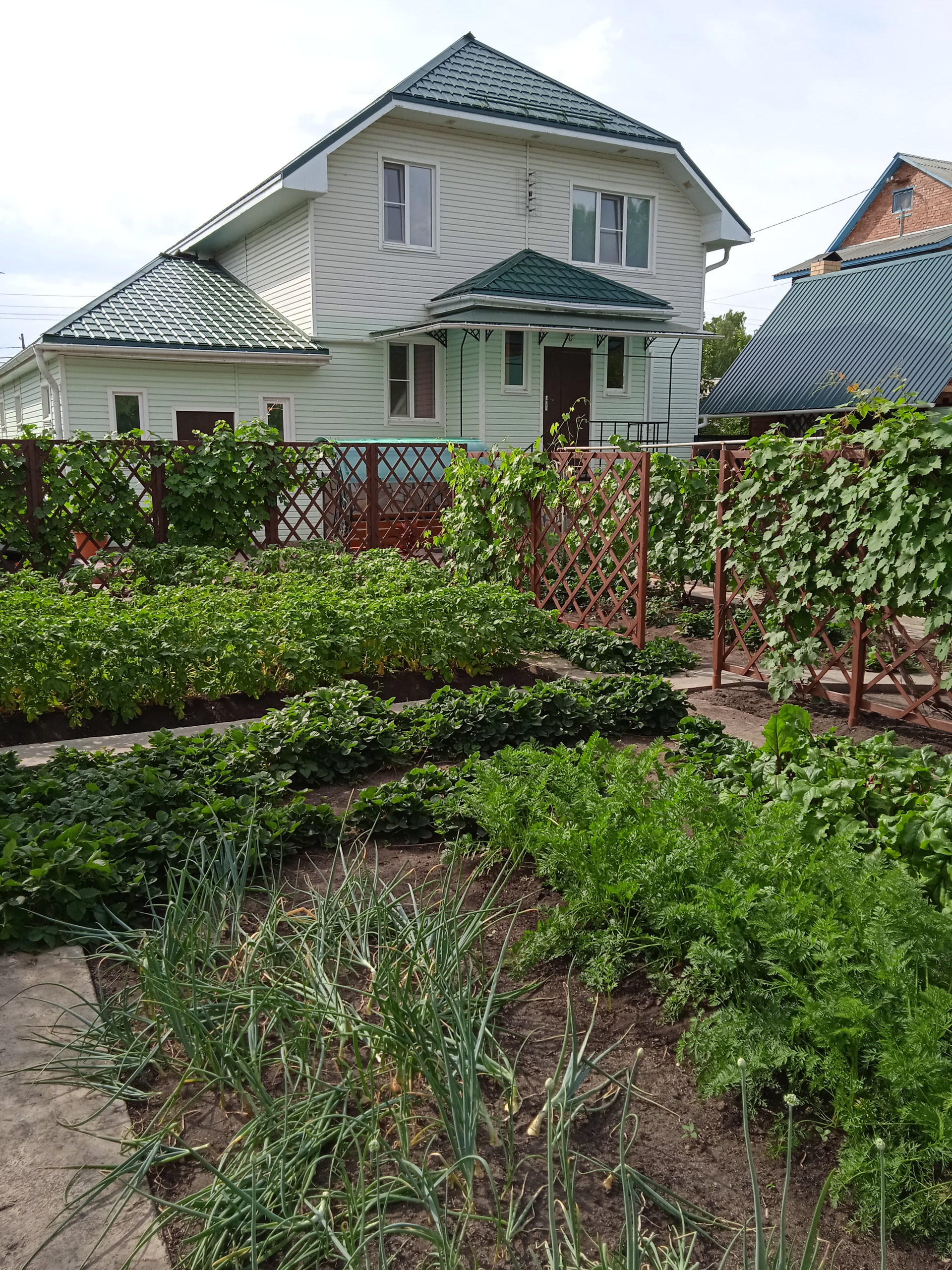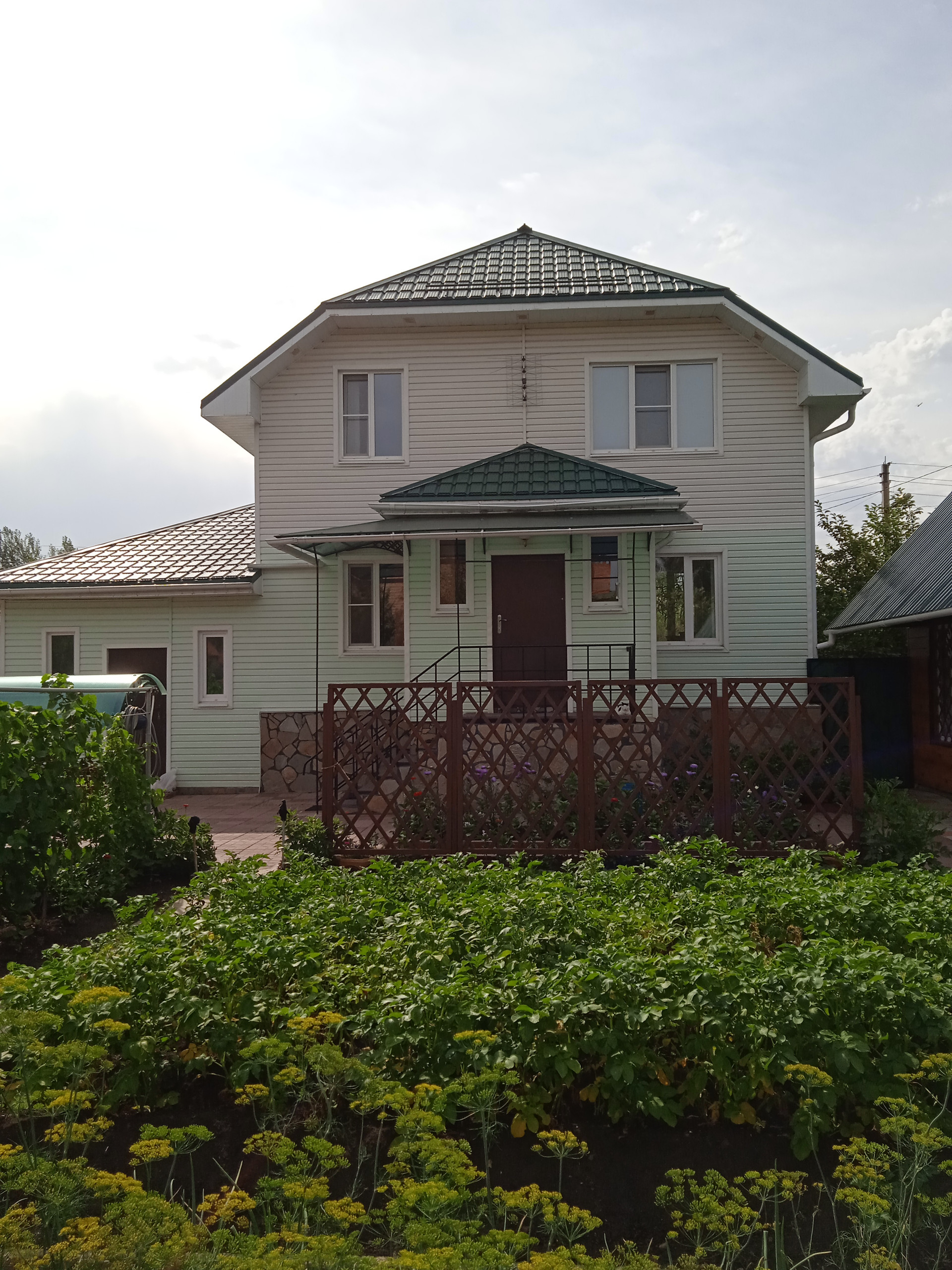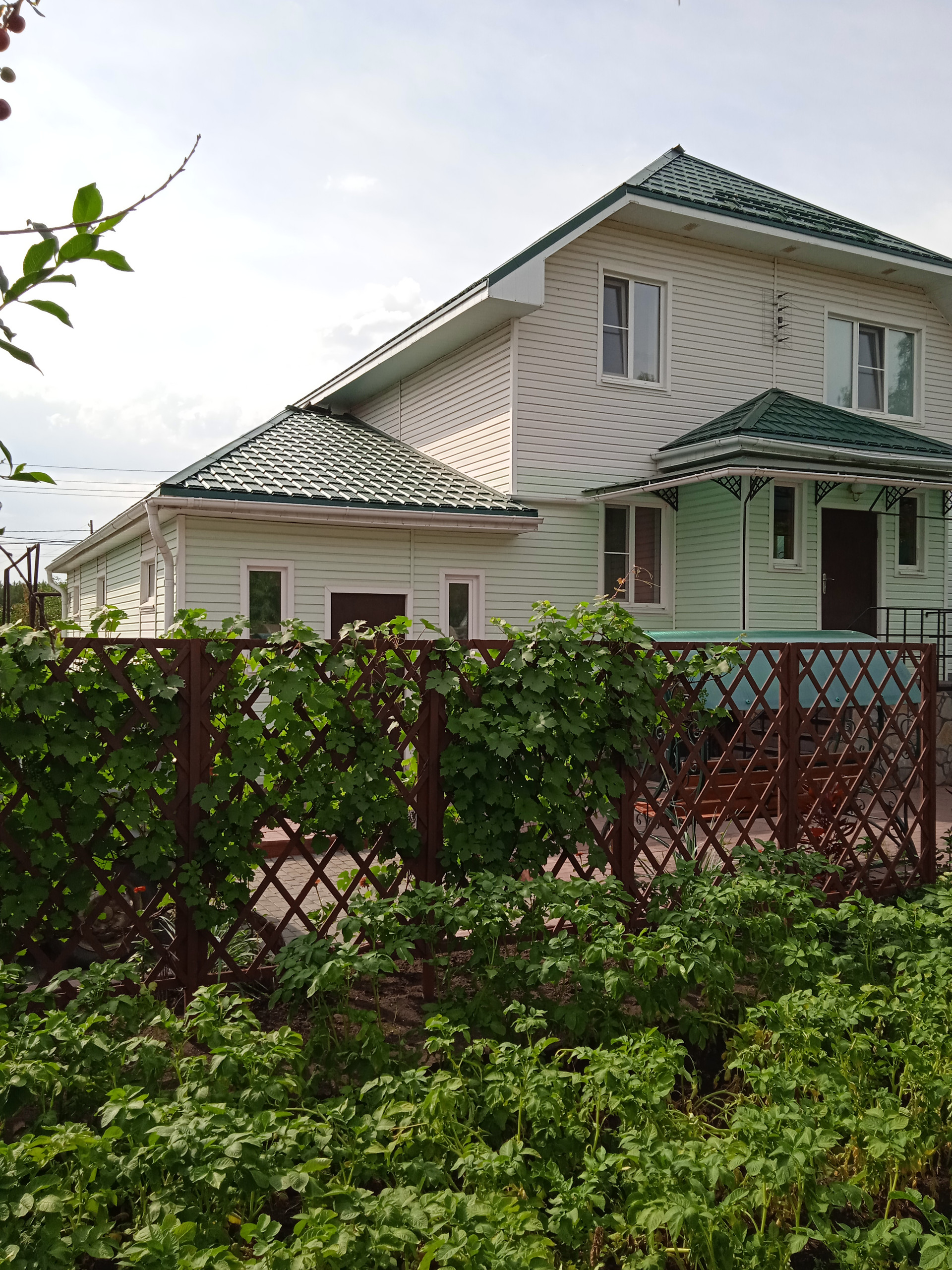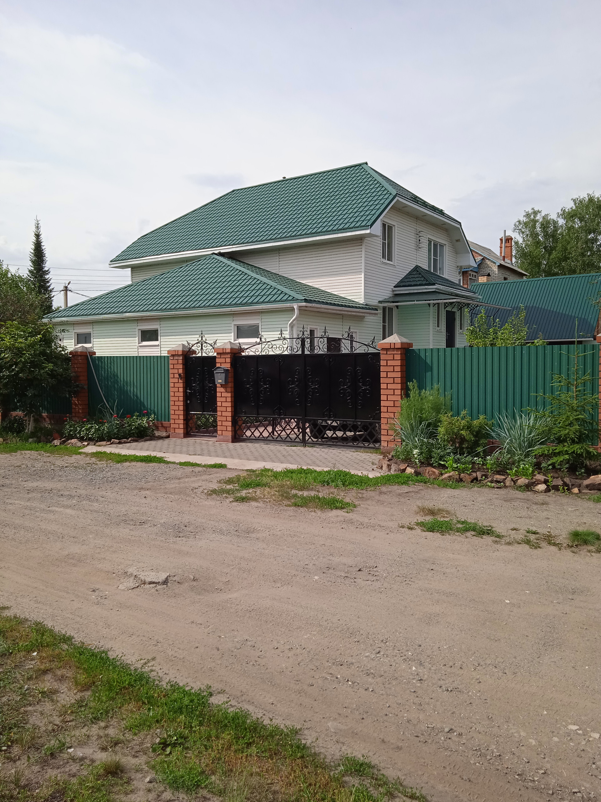 Продам двух этажный дом 200м2+цокольный этаж 100м2. Дом каркасно-щитовой, очень теплый. На первом этаже: зал 33. 4м2, кухня 20. 2м2, ванная комната, туалет 9. 9м2, большой коредор 23. 1м2. На втором этаже :хол 25. 6м2, две спальни 18. 1м2 и 19. 6м2, гардероб 9. 6м2, туалет 6. 1м2. Цокальный этаж:три комнаты, в одной комнате бойлерная, система водо очистки, есть клодовка, овоще хронилише. Гараж с смотровой ямой 52м2, входит КАМАЗ. На участке:летняя кухня, баня, хоз постройки, две теплицы. Плодова-ягодный сад:яблони, груши, абрикос, вишня, малина, клубника, виноград. Дом находится в красивом, тихом месте. Вокруг лес. Хорошие, отзывчивые соседи. Дом продаю частично с мебелью.