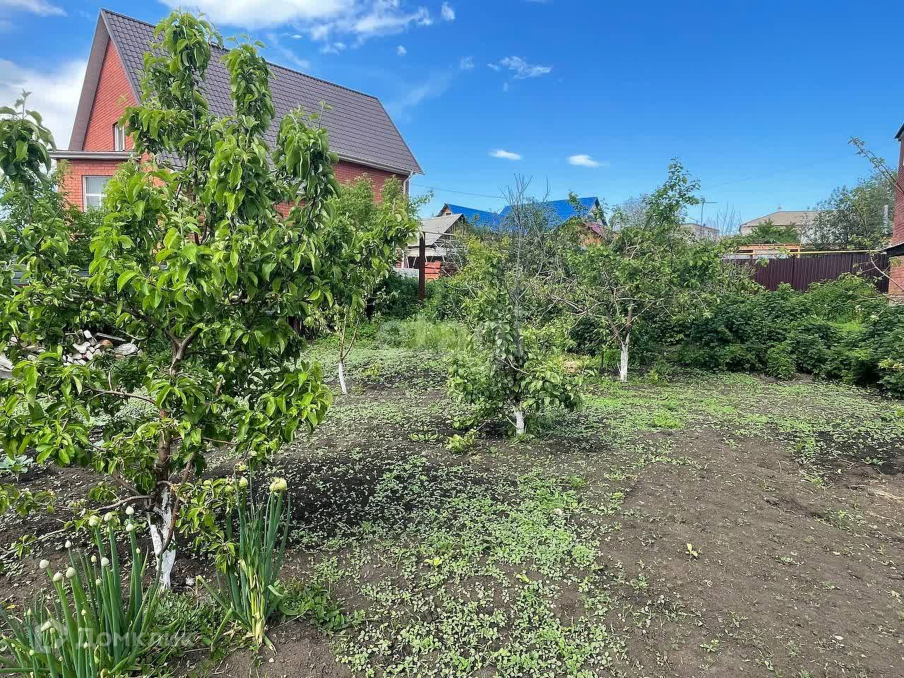 Ухоженный огород, есть плодово-ягодные деревья и кустарники.