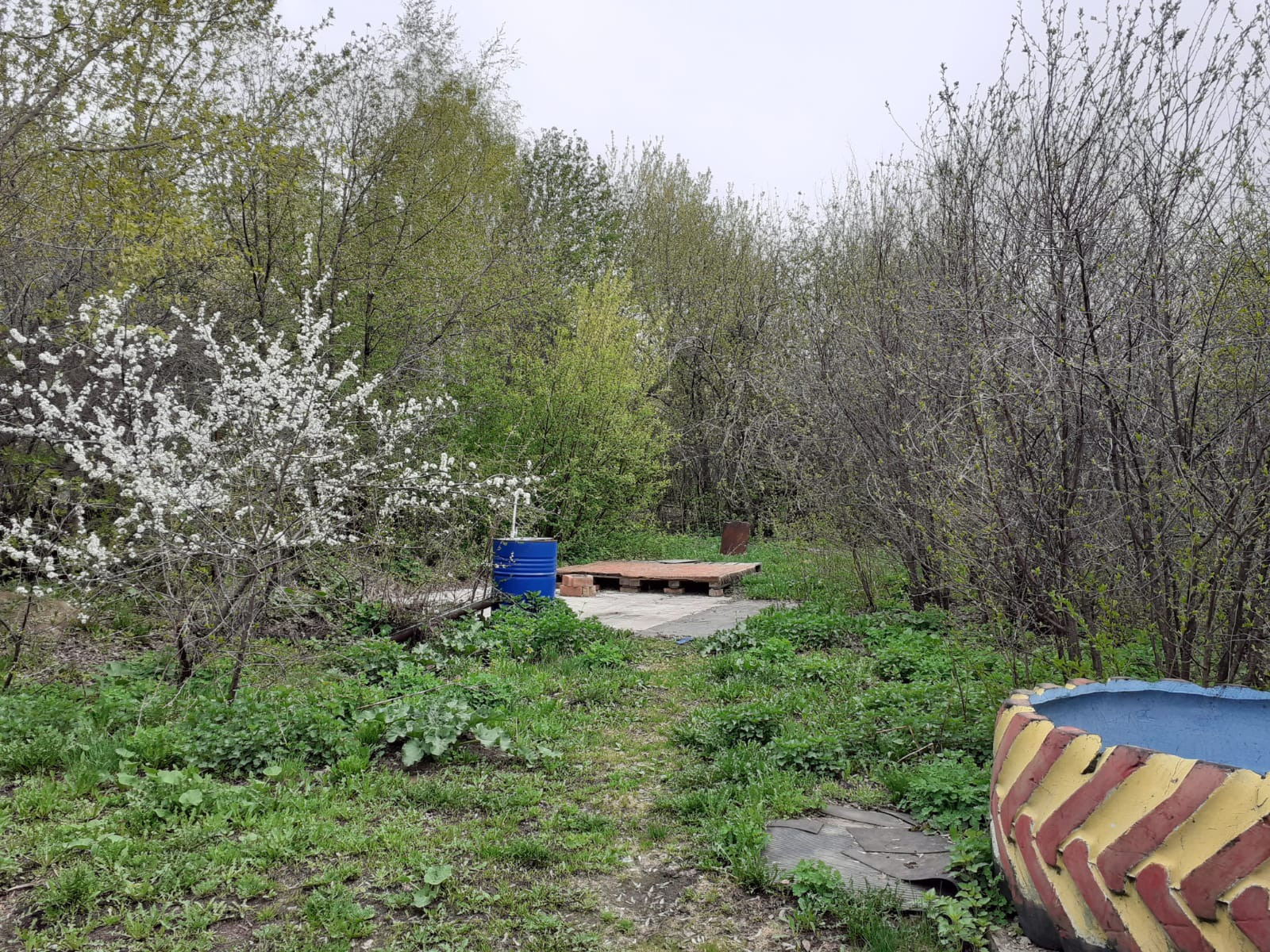 На участке кирпичный гараж, сарайка, баня, площадка под бассейн, вишнёвый сад, площадка под теплицу, двор забетонирован.