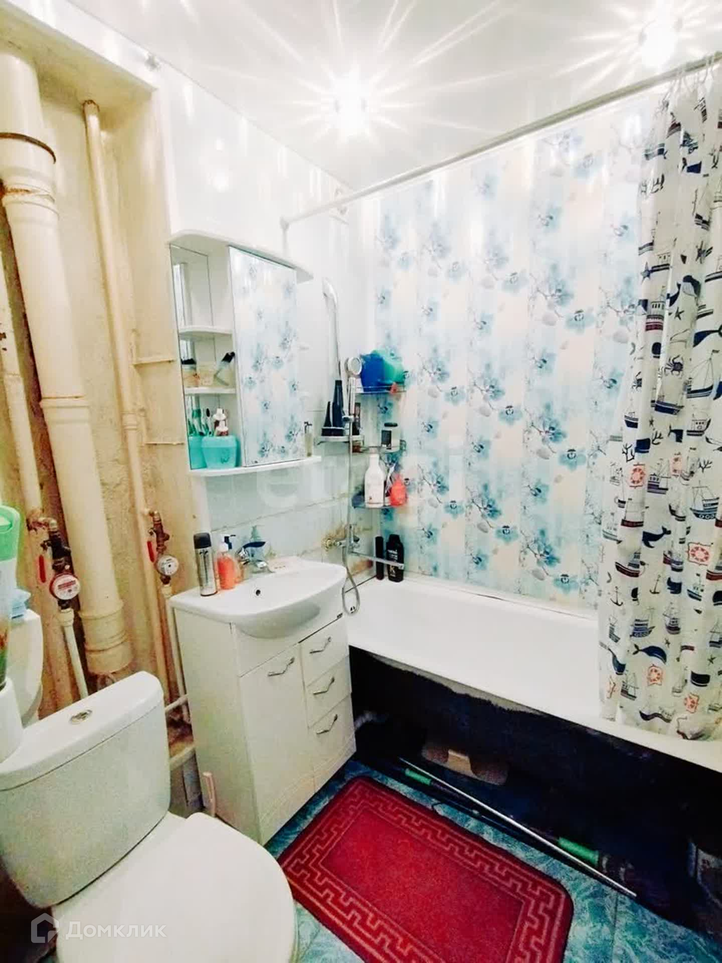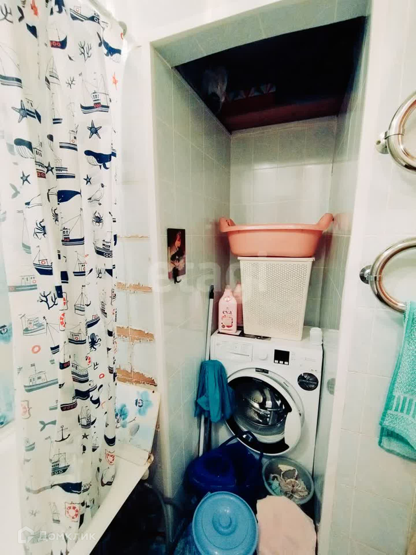 Ванная комната в кафеле+ пластиковые панели. Имеется ниша под стиральную машинку.