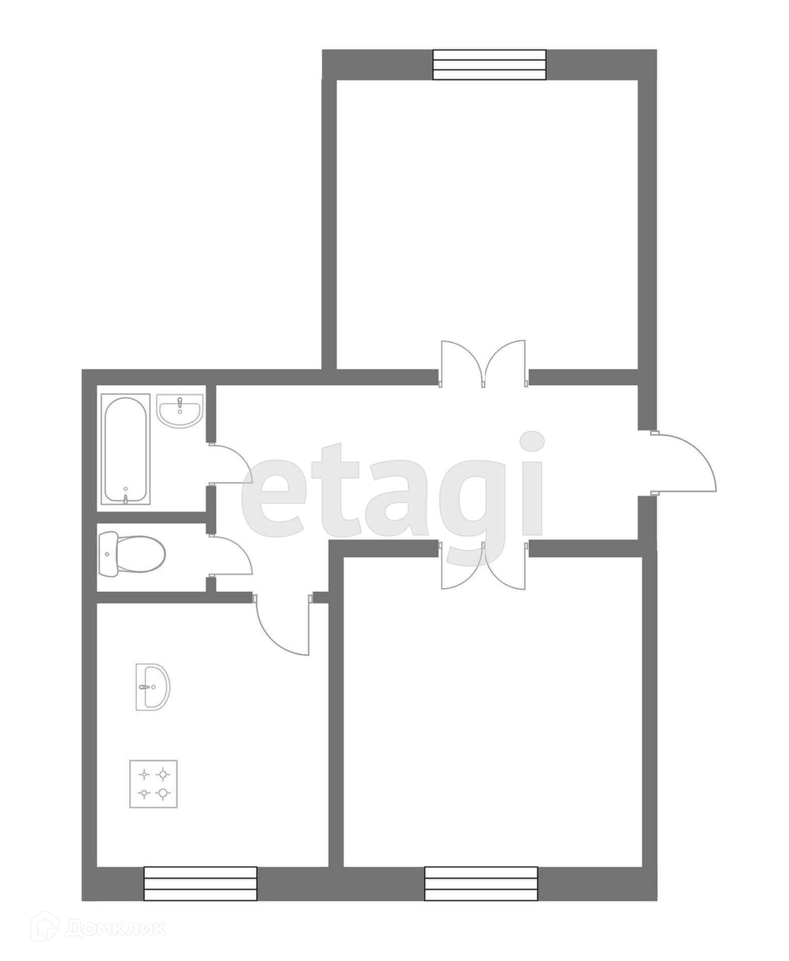 2-комнатная квартира, 50 м2, этаж 2 / 2, на продажу в Южноуральске, Привокзальная улица, 7