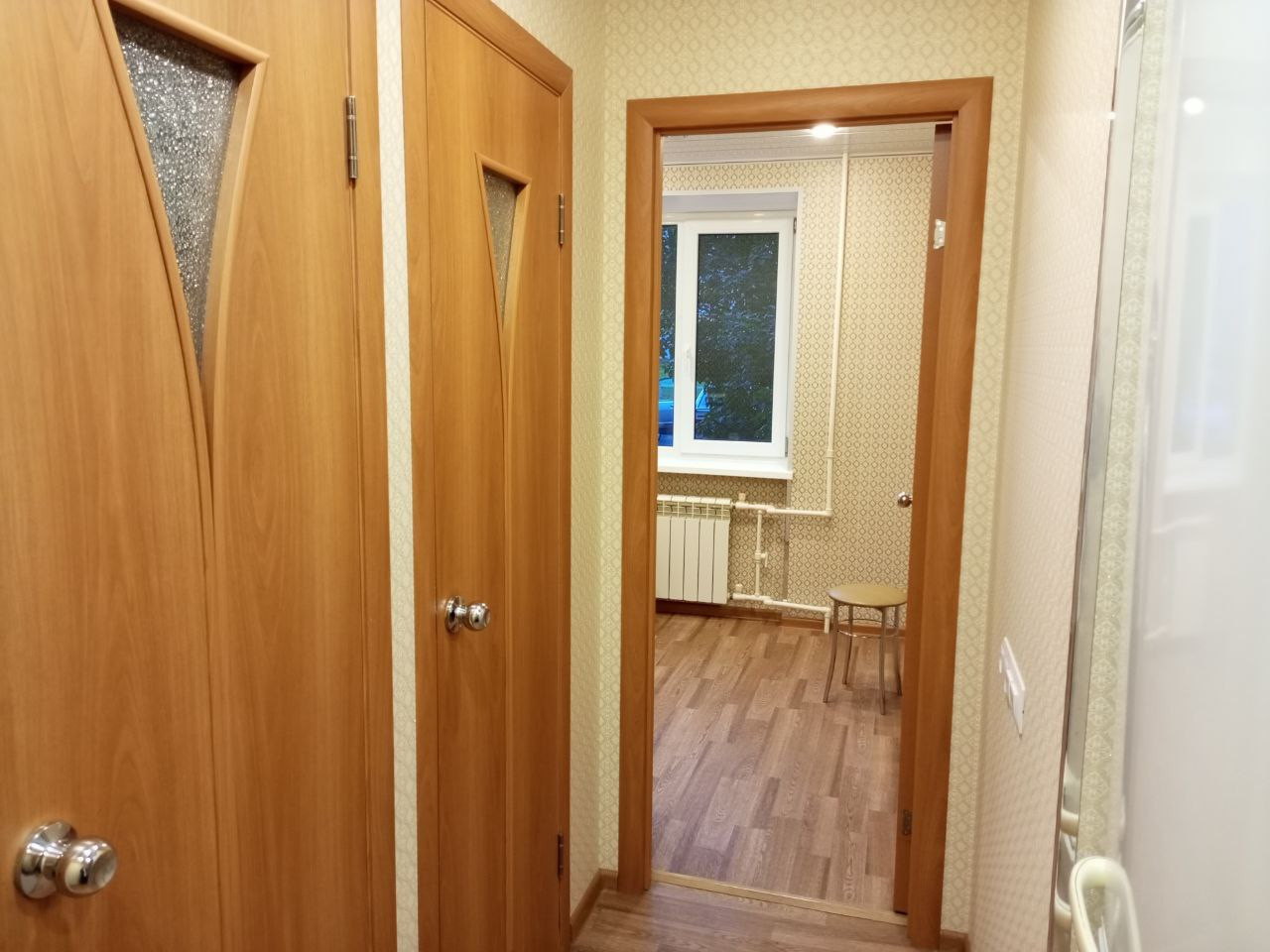 Продается з-комнатная квартира в кирпичном доме, 1 этаж, СУР, с ремонтом. Дом находится не у трассы, во дворе много зелени. 1 взрослый собственник