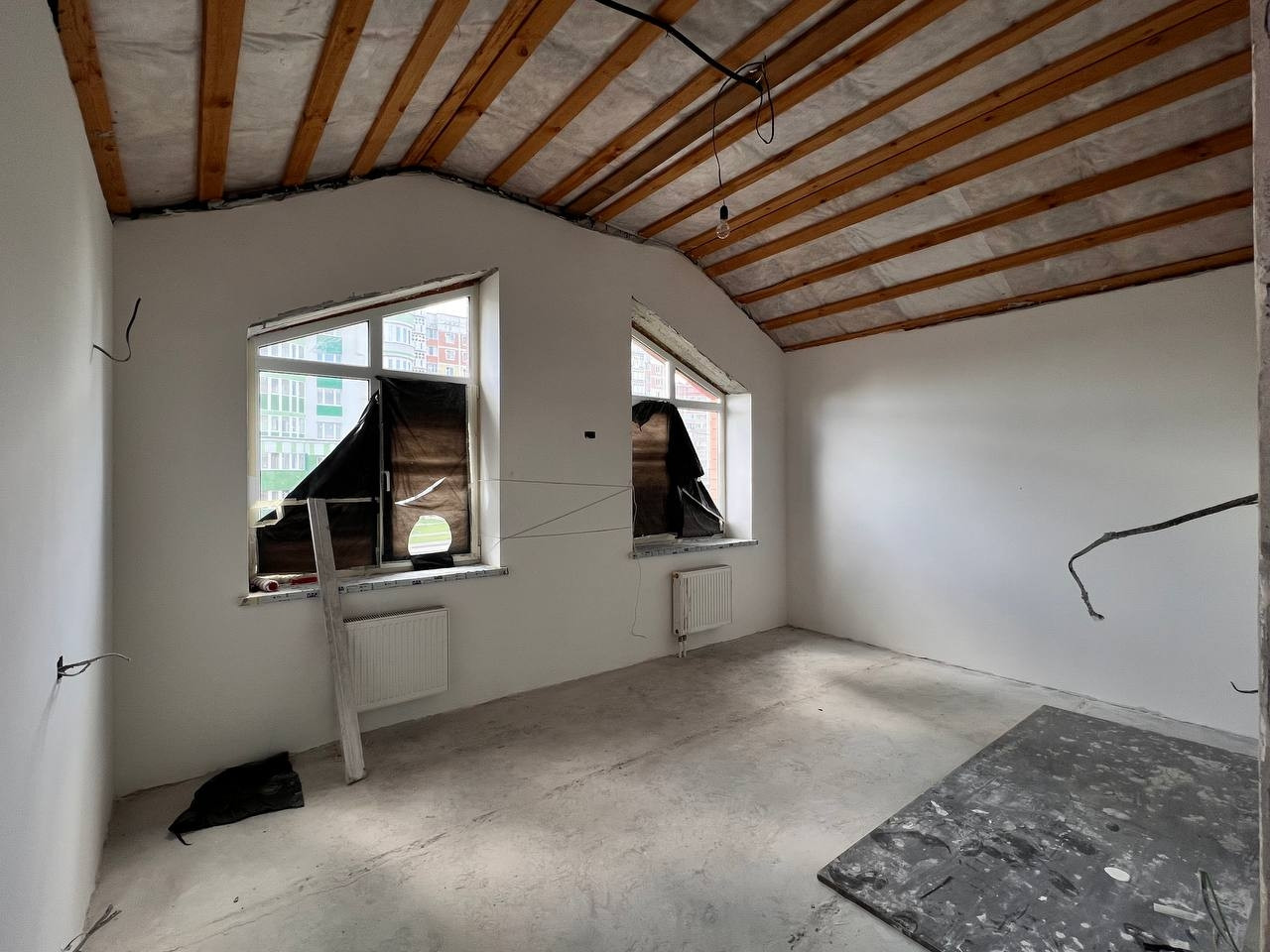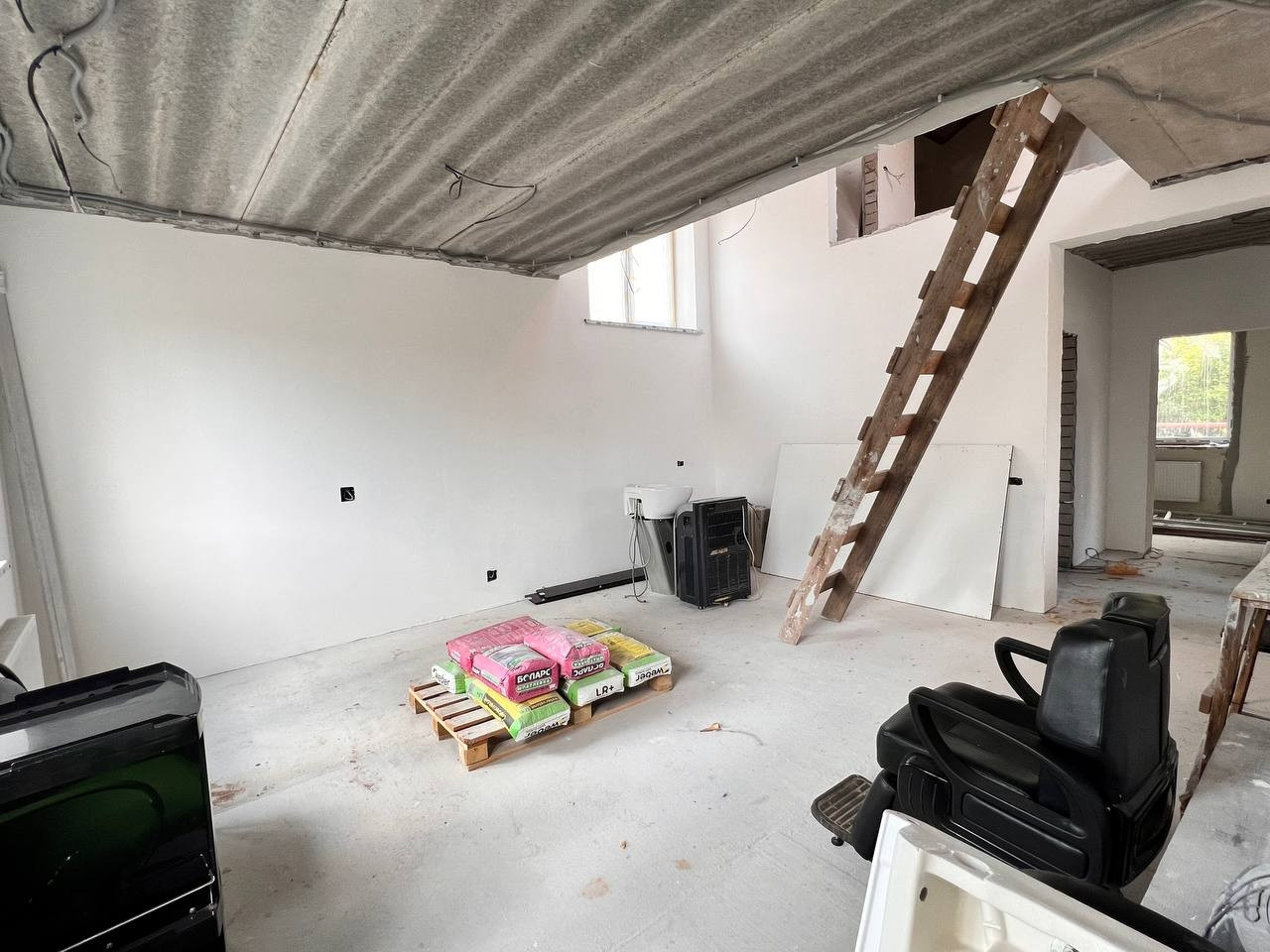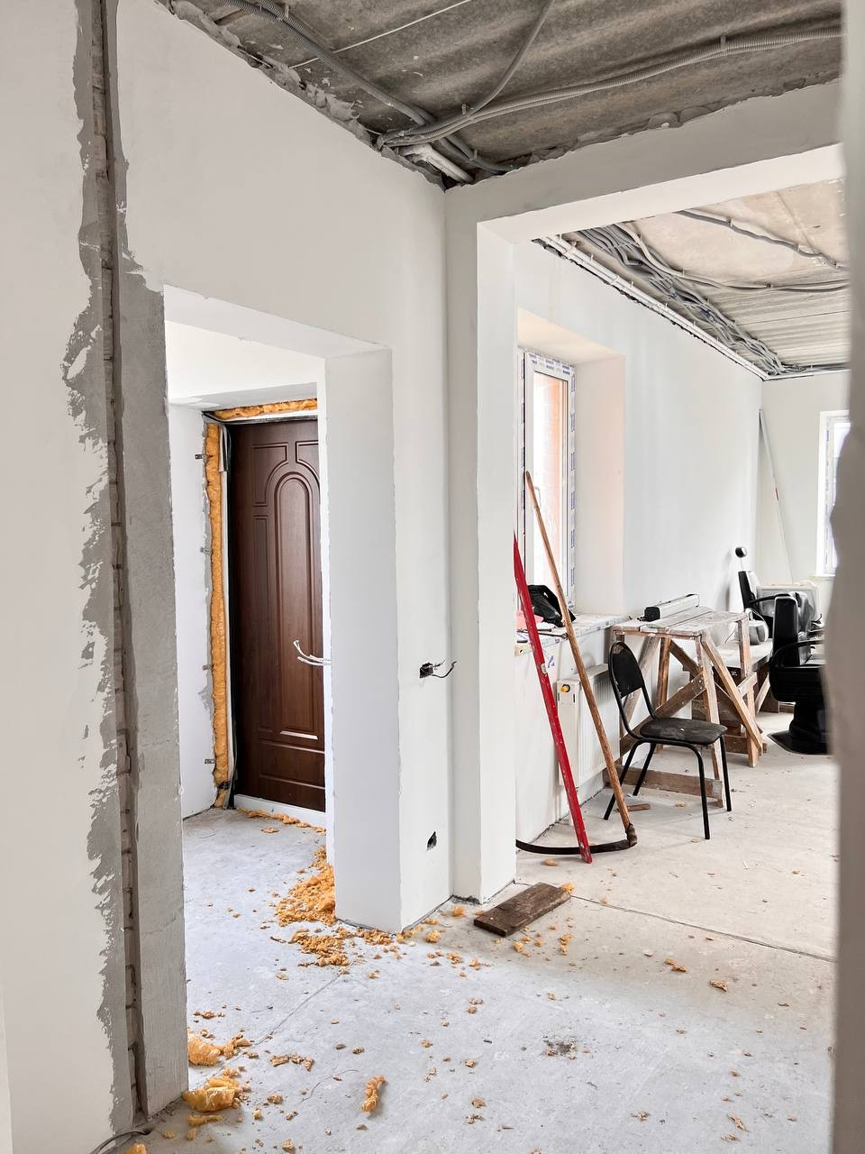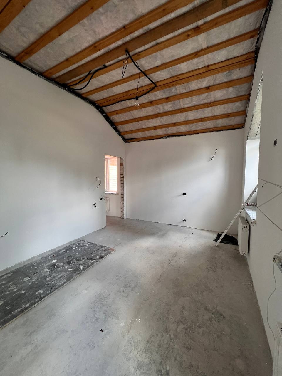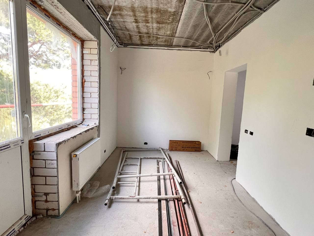 Стяжка пока, штукатурка стен, разведена электрика,