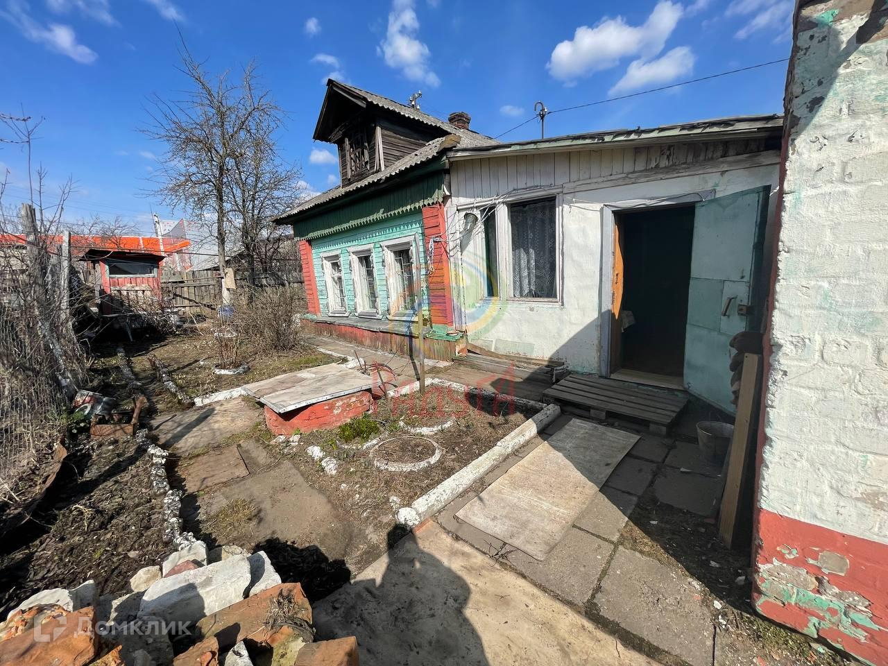 Основная часть дома из бревна, пристройки тесовые и кирпичные.