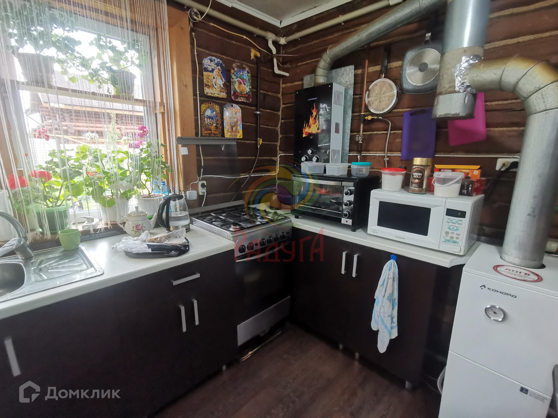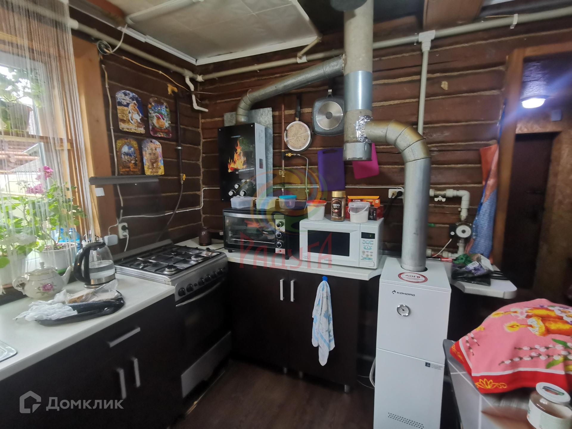 Дом представляет собой бревенчатый сруб на крепком ленточном фундаменте, с глубоким, сухим погребом.