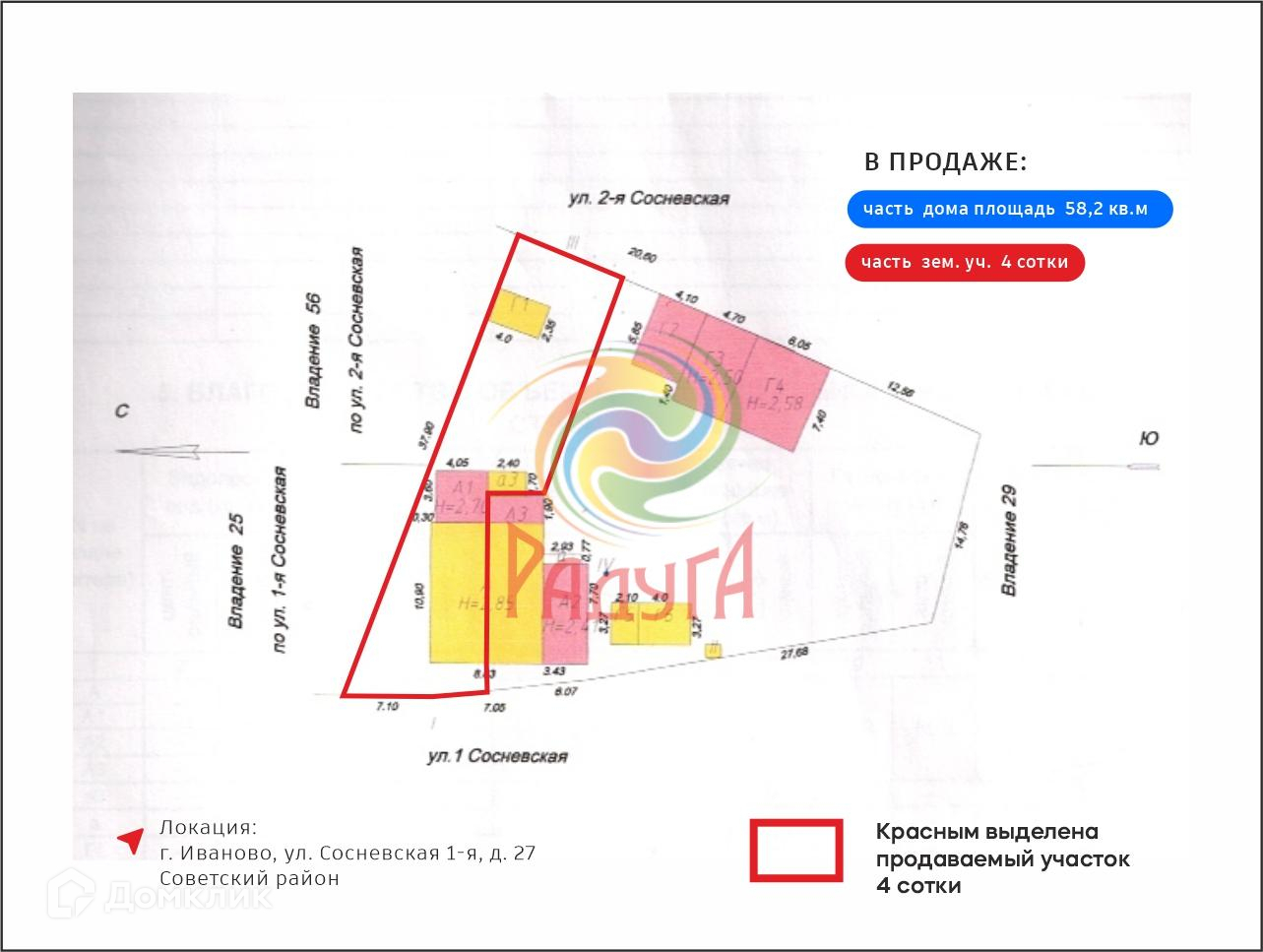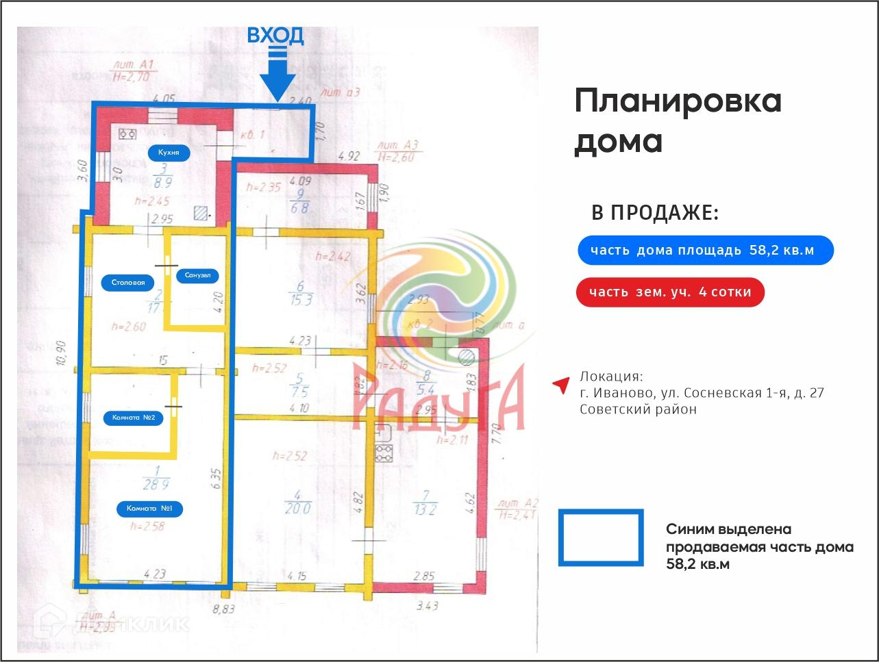 ✔️ Бревенчатый дом с кирпичной пристройкой площадью 58,2 кв.м с ровным участком 4 сотки, расположенный по адресу г. Иваново, ул 1-я Сосневская, дом 27.