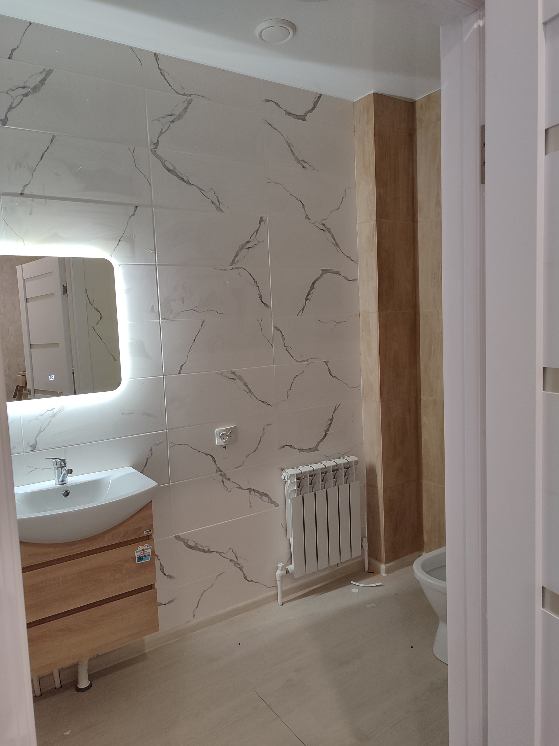 Дом готов к заселению, отделка внешняя и внутренняя завершена, осветительные приборы и сантехника установлена.