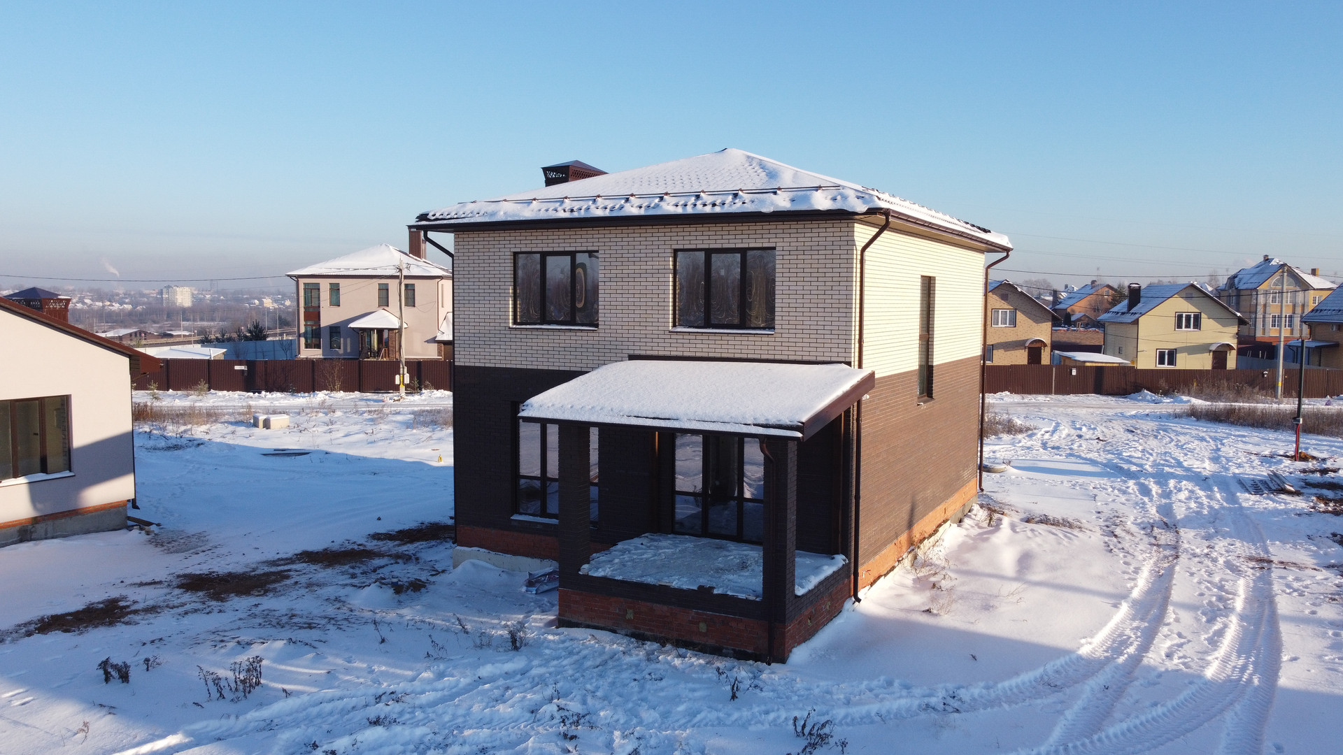 Готовый двухэтажный дом площадью  128 кв.м. по продаётся в поселке нового поколения - Городской. Поселок располагается в 15 минутах езды от центра города (ТЦ Бисмарк) в черте города. Рядом с Беляницами.