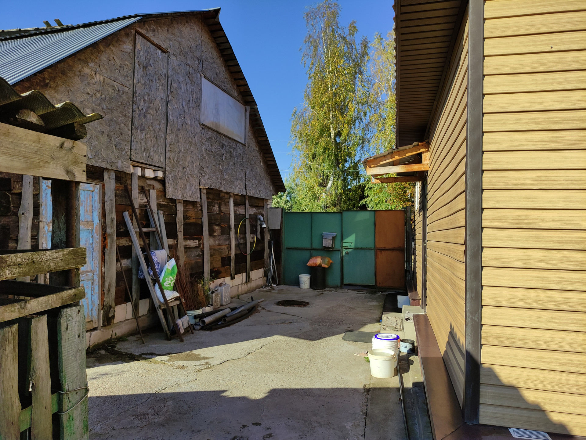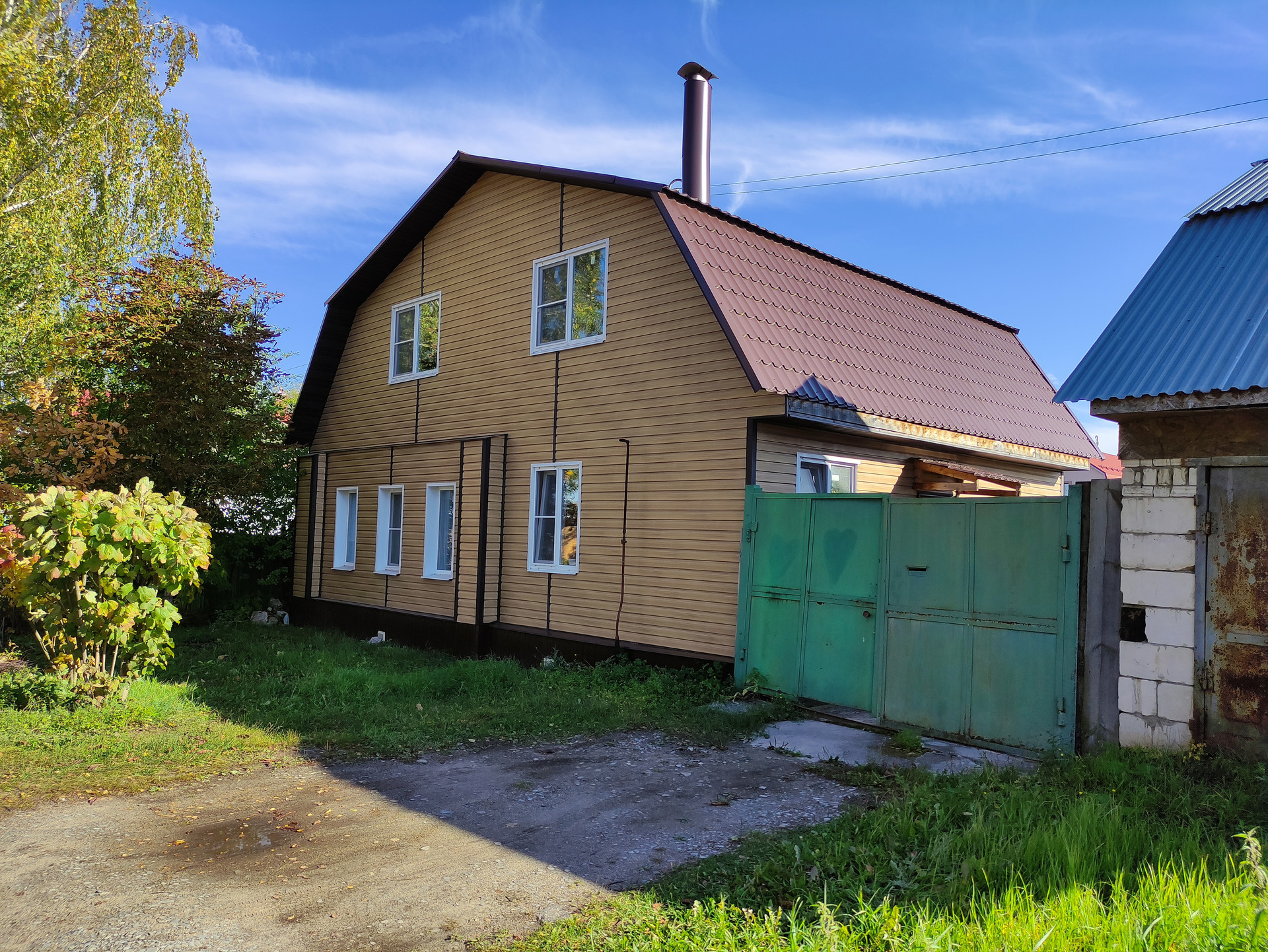 Дом расположен на участке правильной прямоугольной формы, с нулевым уклоном в 50 метрах от крупной магистральной улицы Свободы. На участке имеются две хозпостройки: сарай и летний домик, оборудовано машиноместо с воротами.