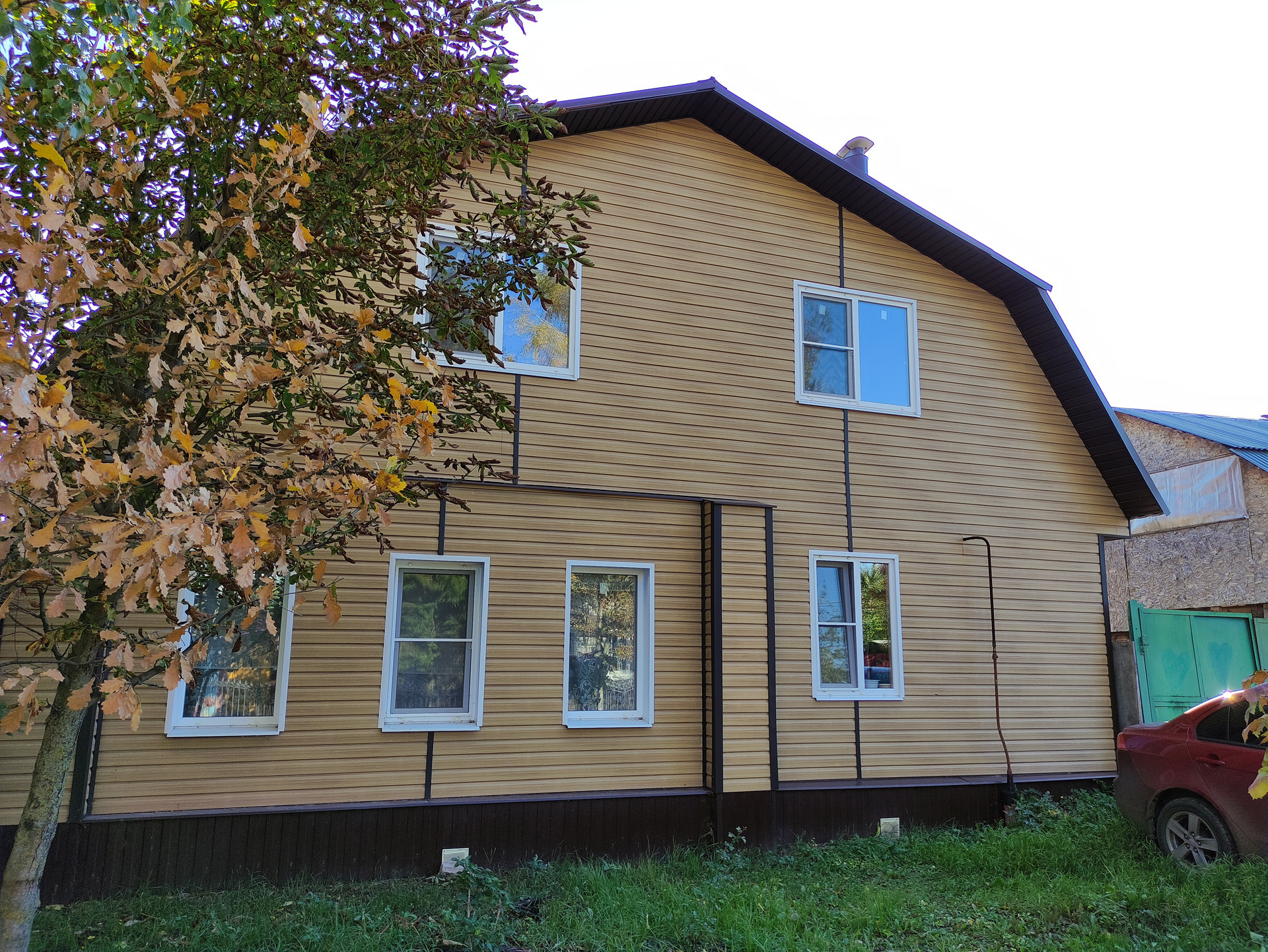- Снаружи дом обшит сайдингом