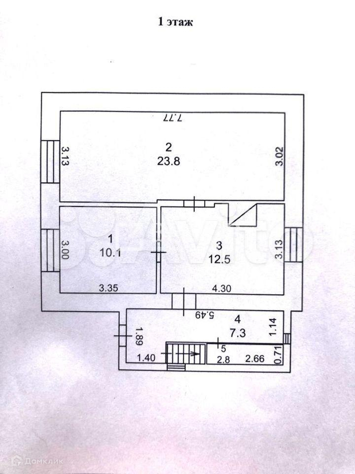 На первом этаже жилого дома расположены: кухня площадью 12,5 кв.м., две комнаты (10,1 кв.м. и 23,8 кв.м.).