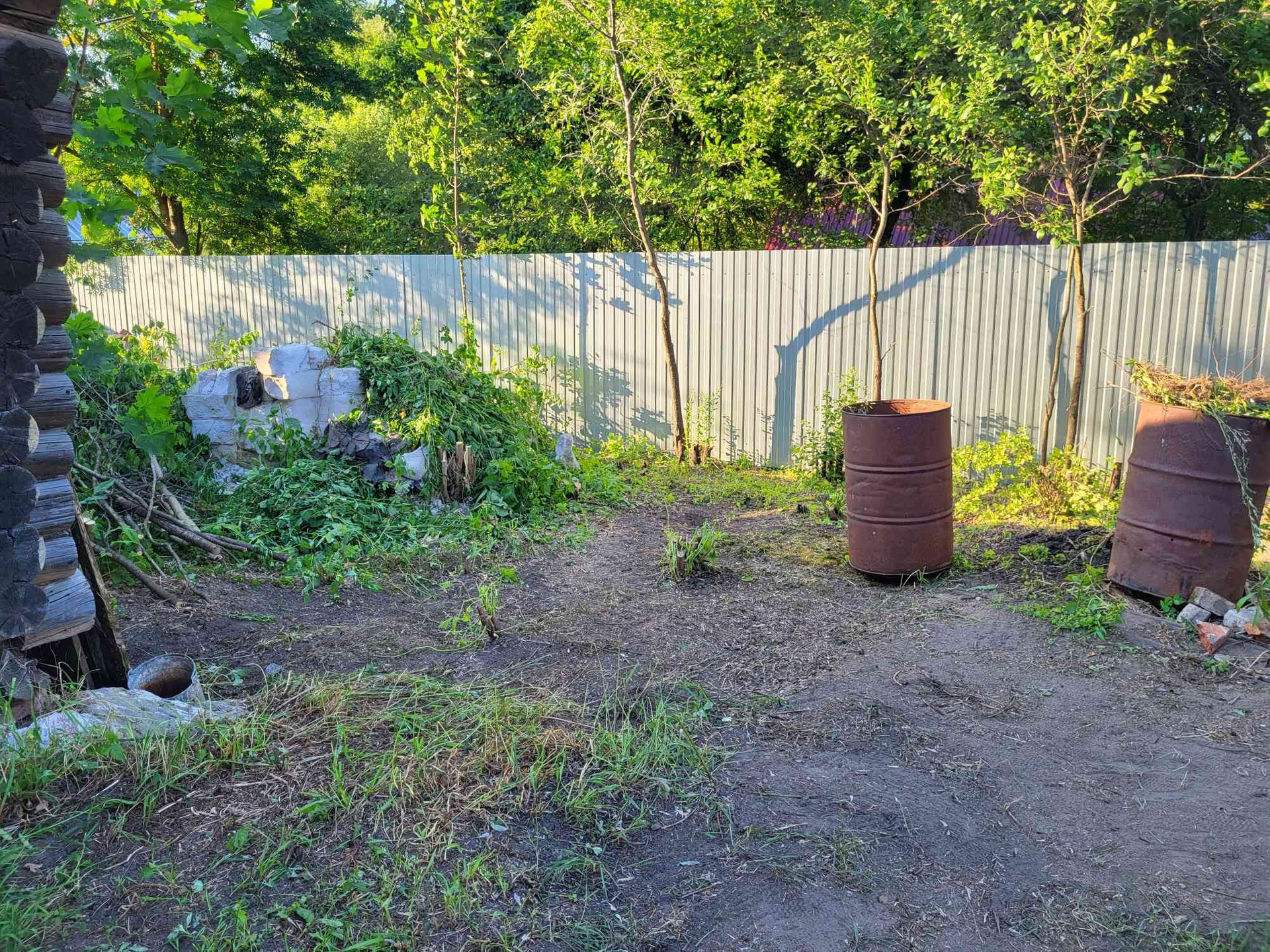 Со всех сторон заборы из профлиста.