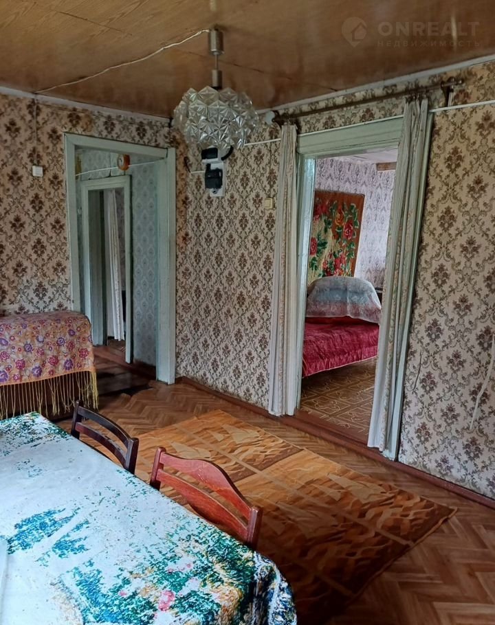 Во второй половине дома: 3 комнаты и кухня. Ремонта не было давно, вода только холодная, туалета нет.