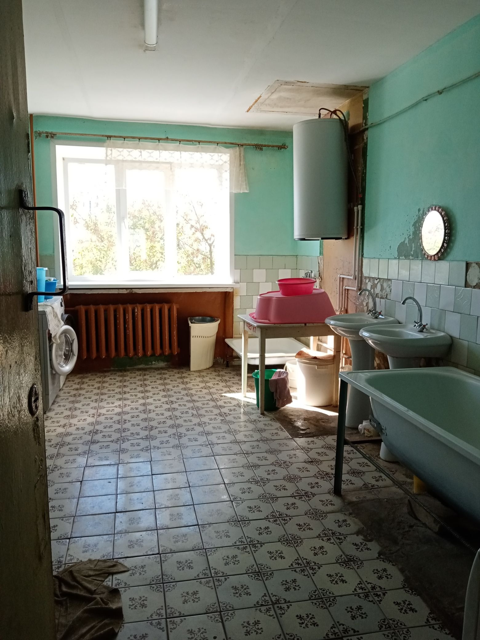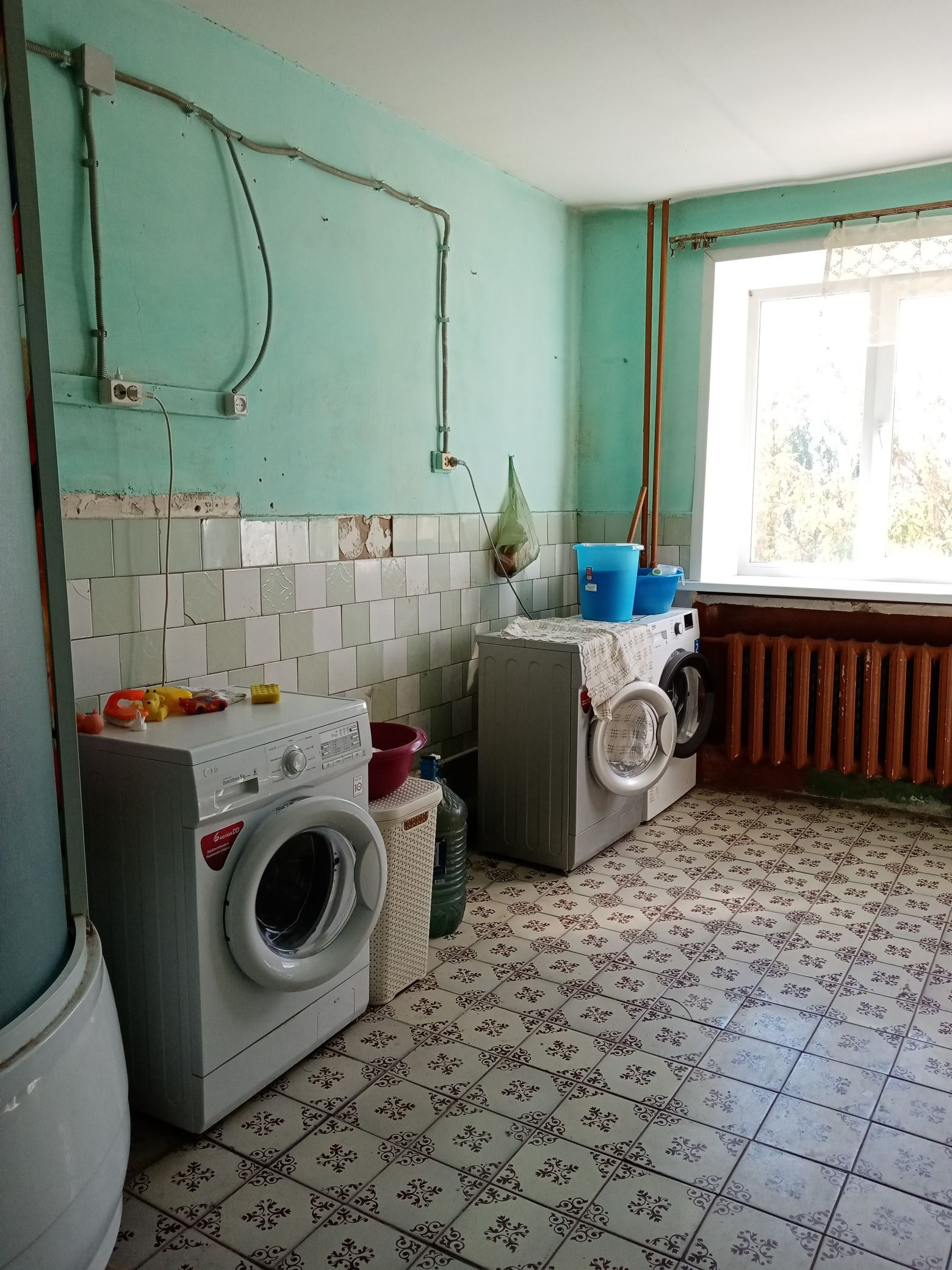 На этаже кухня, комната отдыха, сушилка, туалет, ванна, есть место под стиральную машину.