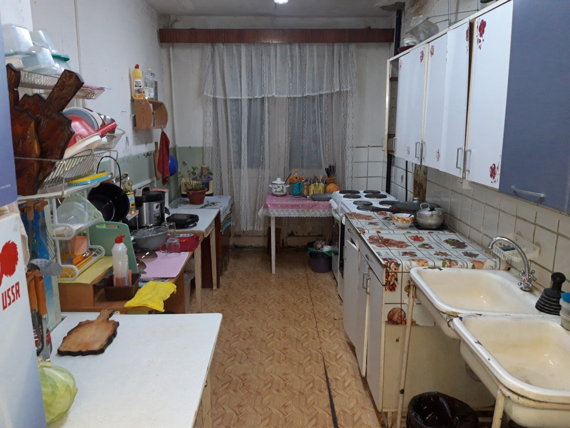Места общего пользования в хорошем состоянии,туалет на две комнаты,ванная комната и общий уютный холл с балконом на четыре комнаты,общая кухня на блок.