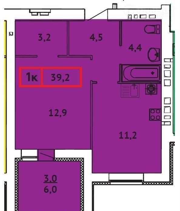 Общая площадь 39.2 м2