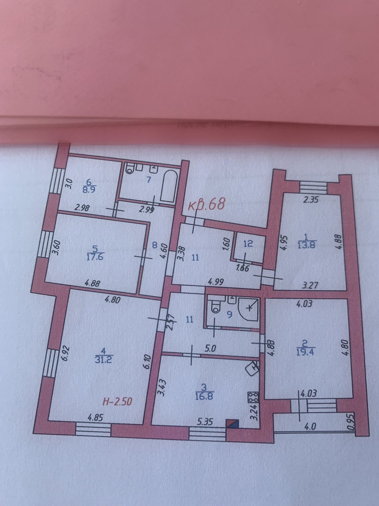 Комнаты: 19,4; 31,2; 17,6; 13,8; 8,9.