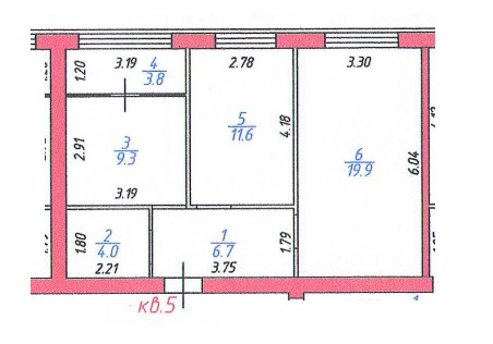 Общая площадь 55.3 м2
