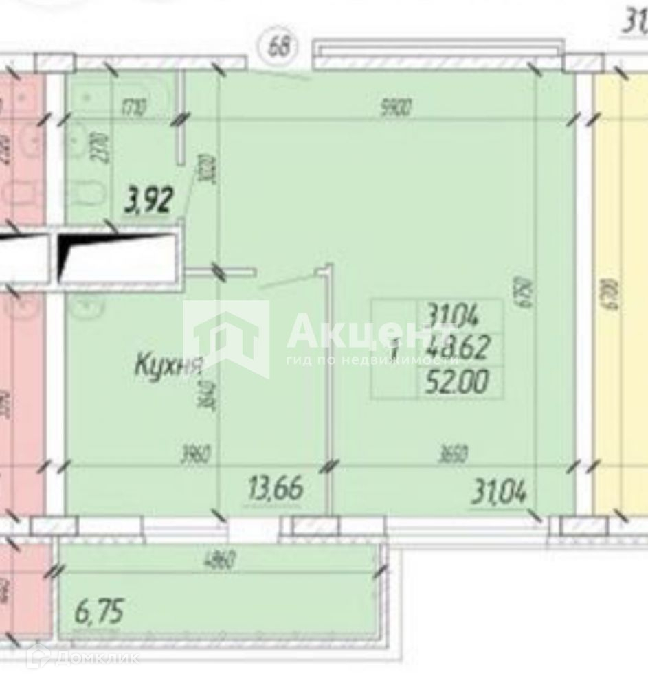 Общая площадь 52 м2