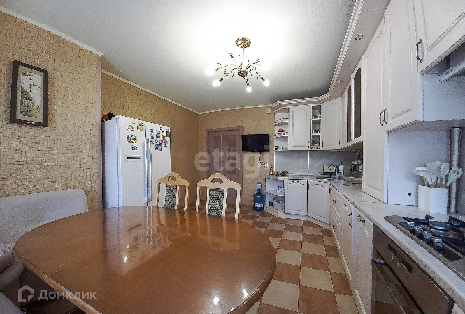 В квартире выполнен капитальный ремонт с использованием дорогостоящих отделочных материалов. Установлены межкомнатные двери из массива дерева. На полу в прихожей и на кухне - плитка, в комнатах - ламинат. Многоуровневые потолки с разными сценариями освещения. Встроенный кухонный гарнитур, фасады - крашеный массив. Имеется вся необходимая техника: газовая варочная поверхность, духовой шкаф, посудомоечная машина, холодильник Side-by-Side. Огромный обеденный стол (массив). В прихожей вместительные встроенные шкафы. Один сан узел совмещенный, полностью в плитке, установлена душевая кабина с джакузи. Второй сан. узел также в плитке, переоборудован под домашний салон красоты. На лоджии можно сделать зимний сад или чилаут зону. Установлены счетчики, низкие коммунальные платежи для такой площади. Дом обслуживает ТСЖ.