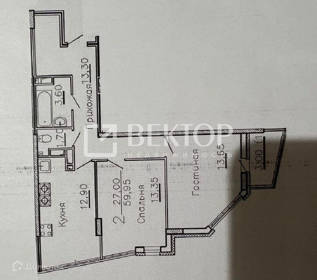 2-комнатная квартира, 60 м2, этаж 15 / 17, на продажу в Иваново, Революционная улица, 36к1
