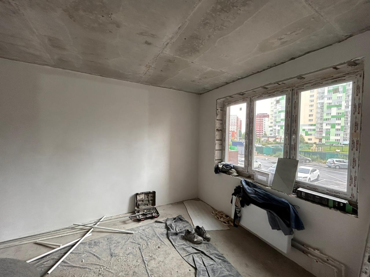 стены оштукатурены, полы залиты, это важно, вы сможете сразу приступить к ремонту.