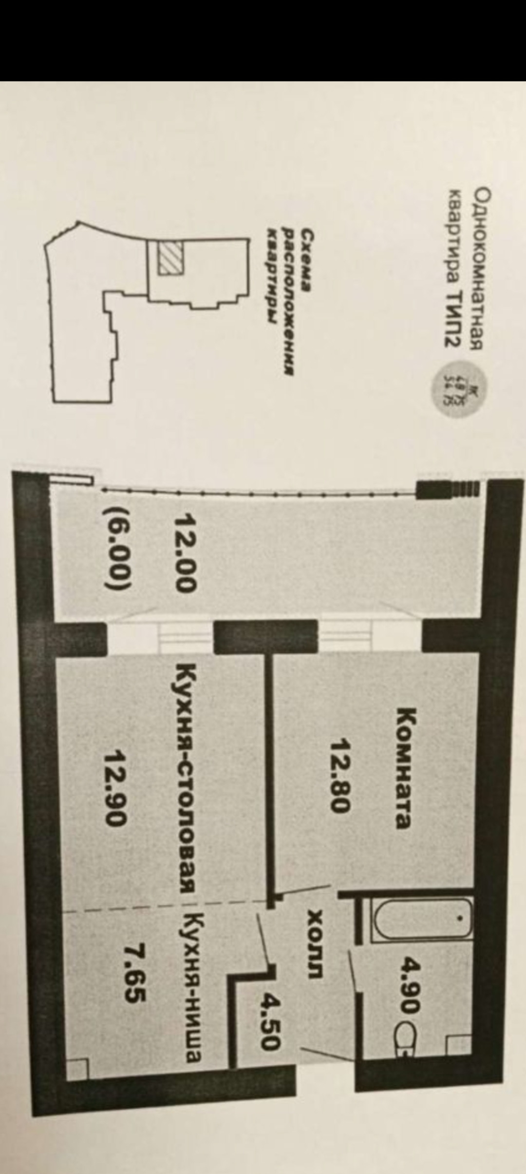 Общая площадь 54 м2